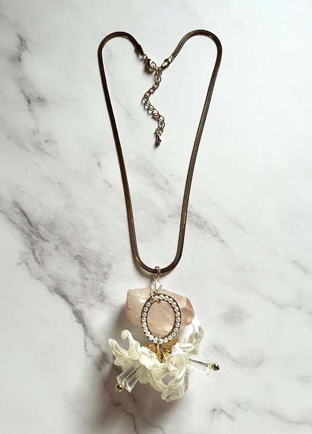仙女たちの愛用していたアンティークの装身具を取り扱う、セレクトショップ桃仙鄉。 お洒落な仙女たちに思いを馳せた中華テイストのアクセサリーは、どこか遊び心のある華やかなデザインばかり。 季節を問わず楽しめる桃仙鄉アクセサリーをどうぞお楽しみください。 素材:硝子ビーズ、キャストパーツ、プラスチックビーズ、シェルビーズ、淡水パールなど 素材には日本製、海外製のパーツやヴィンテージのパーツを使用しているものがあります。 海外製パーツは日本製の物と違い最初から小さなキズや欠け、ゆがみ等が含まれます。 またヴィンテージパーツにつきましても性質上曇りやキズが含まれるものがあります。 デザインに響くもの、怪我の恐れのあるものは事前の検品にて省いておりますが 上記をご了承頂いた上でご購入頂ければ幸いです。 サイズ:チェーン長さ約45cm(金具含む)+アジャスター5cm