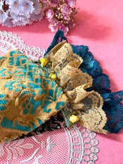 素材:金華山織生地、インド刺繍りぼん、台湾製巻薔薇、綿プリント生地、インド製ブレード、ラッセルレース、ストレッチレースなど