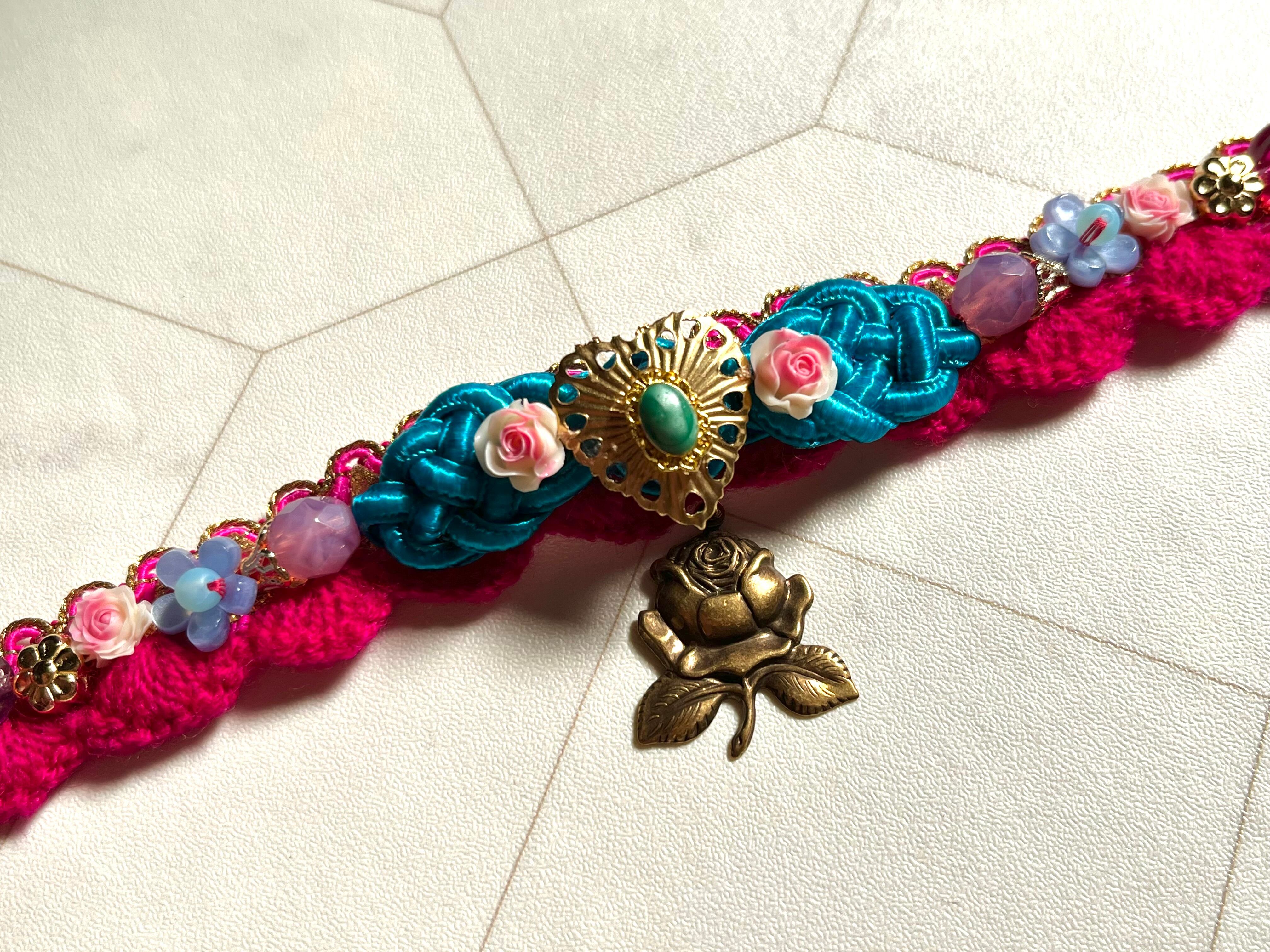 極東の踊り子チョーカー(濃ピンク、薔薇)