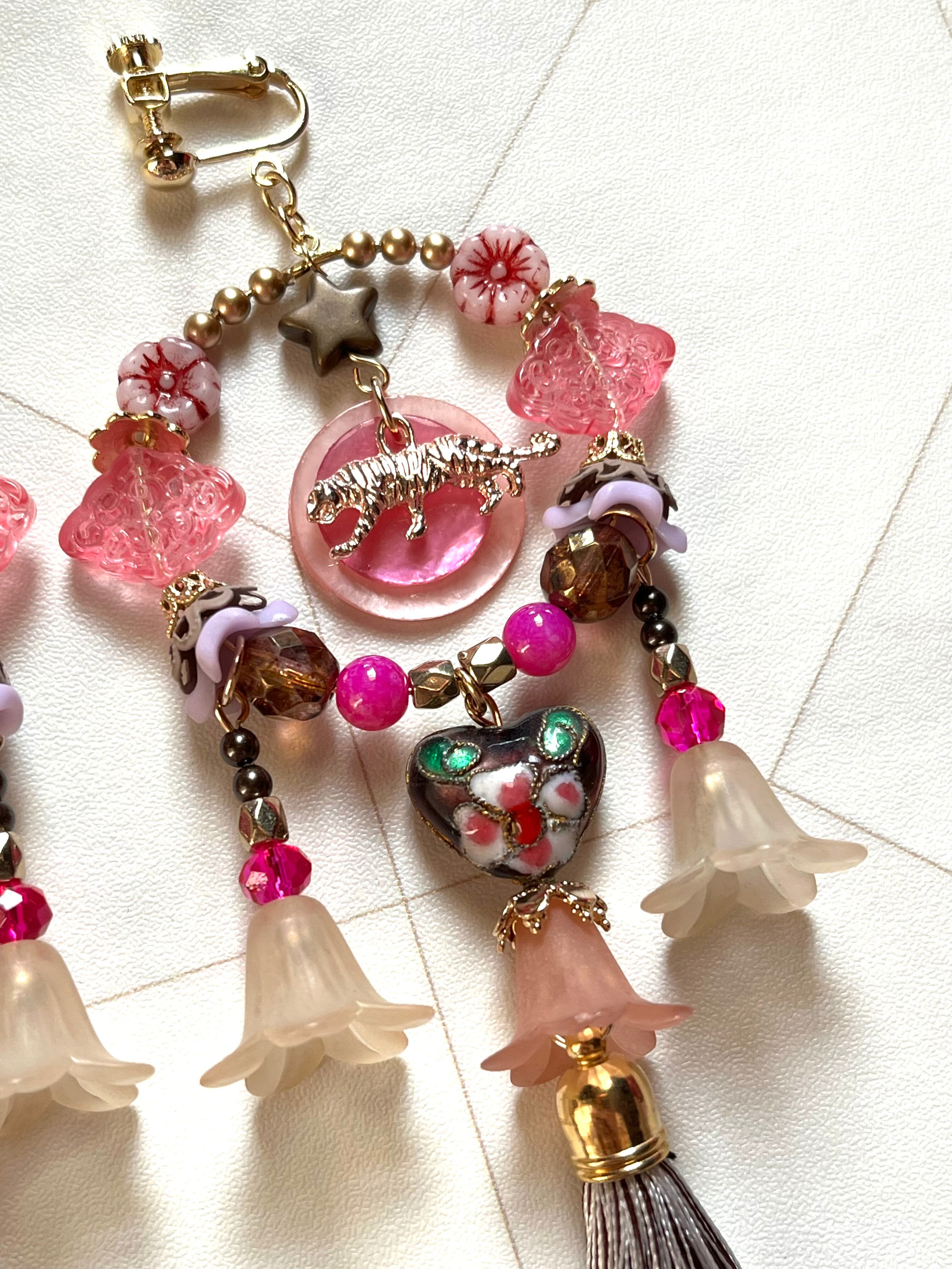 素材:チェコ硝子ビーズ、プラスチックビーズ、キャストパーツ、シェルビーズなど