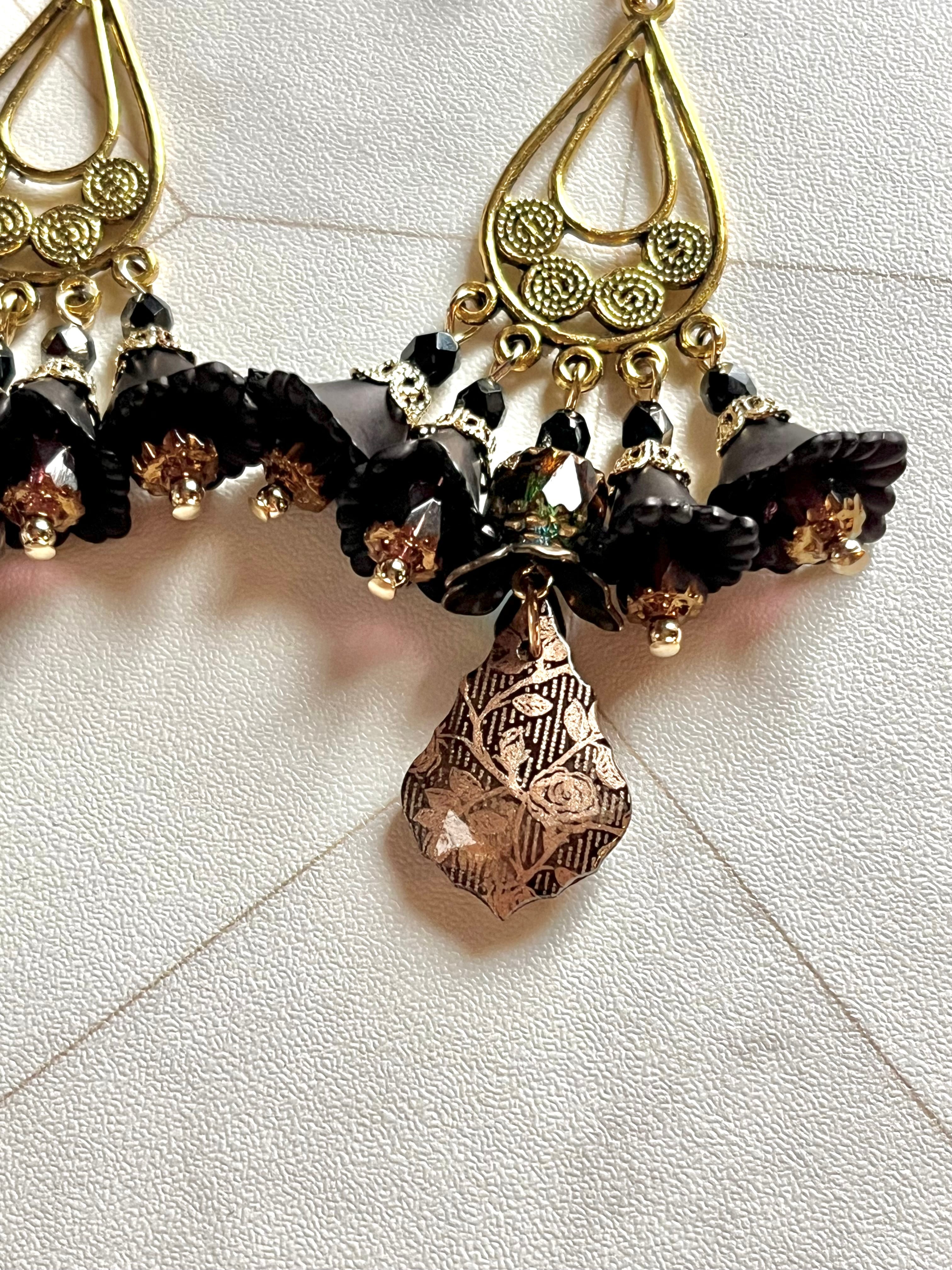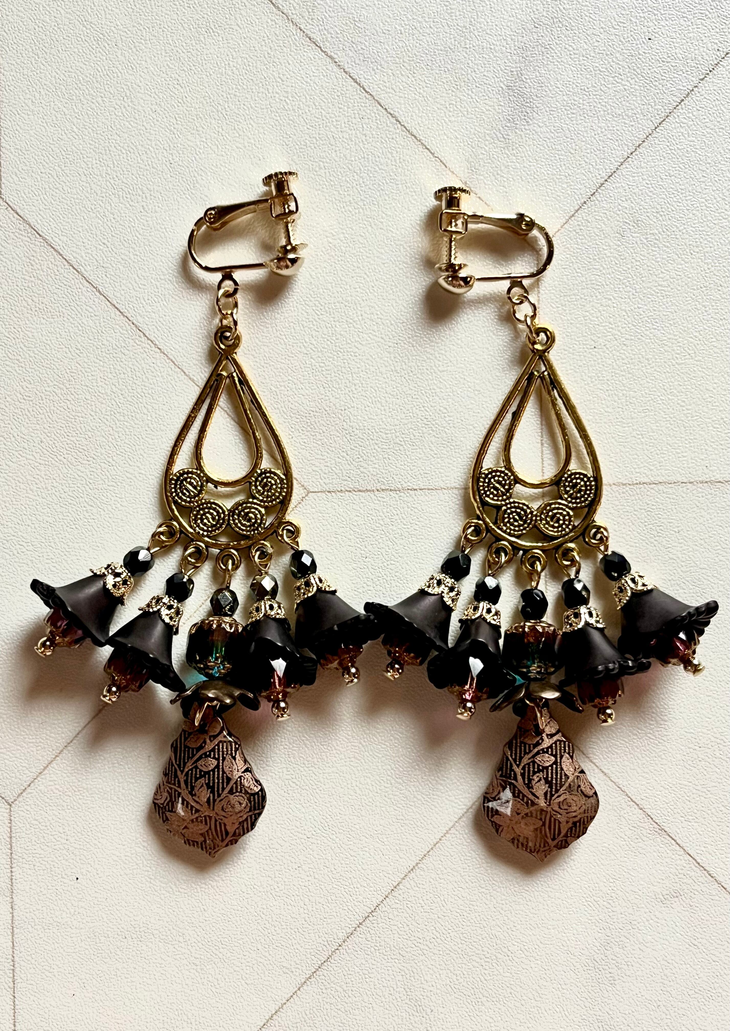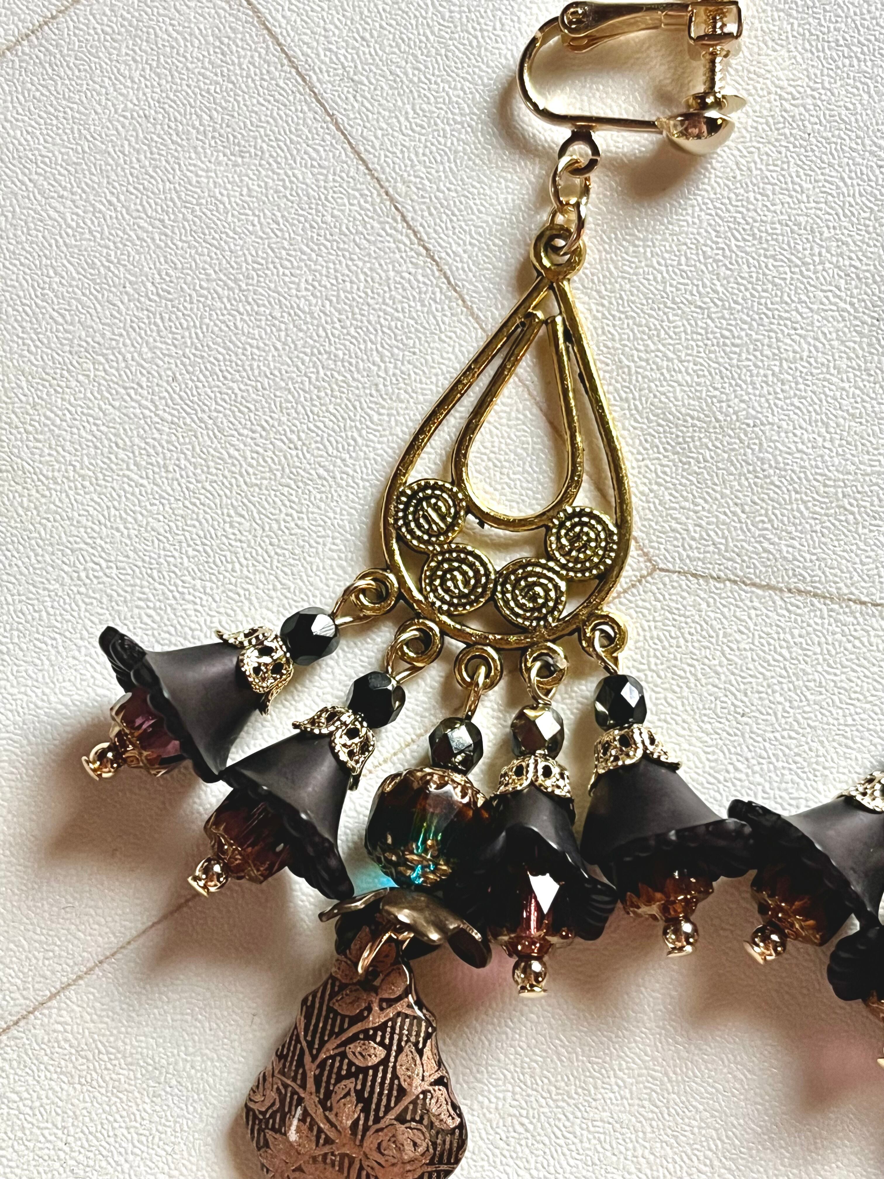 素材:チェコ硝子ビーズ、キャストパーツ、手染めビーズなど