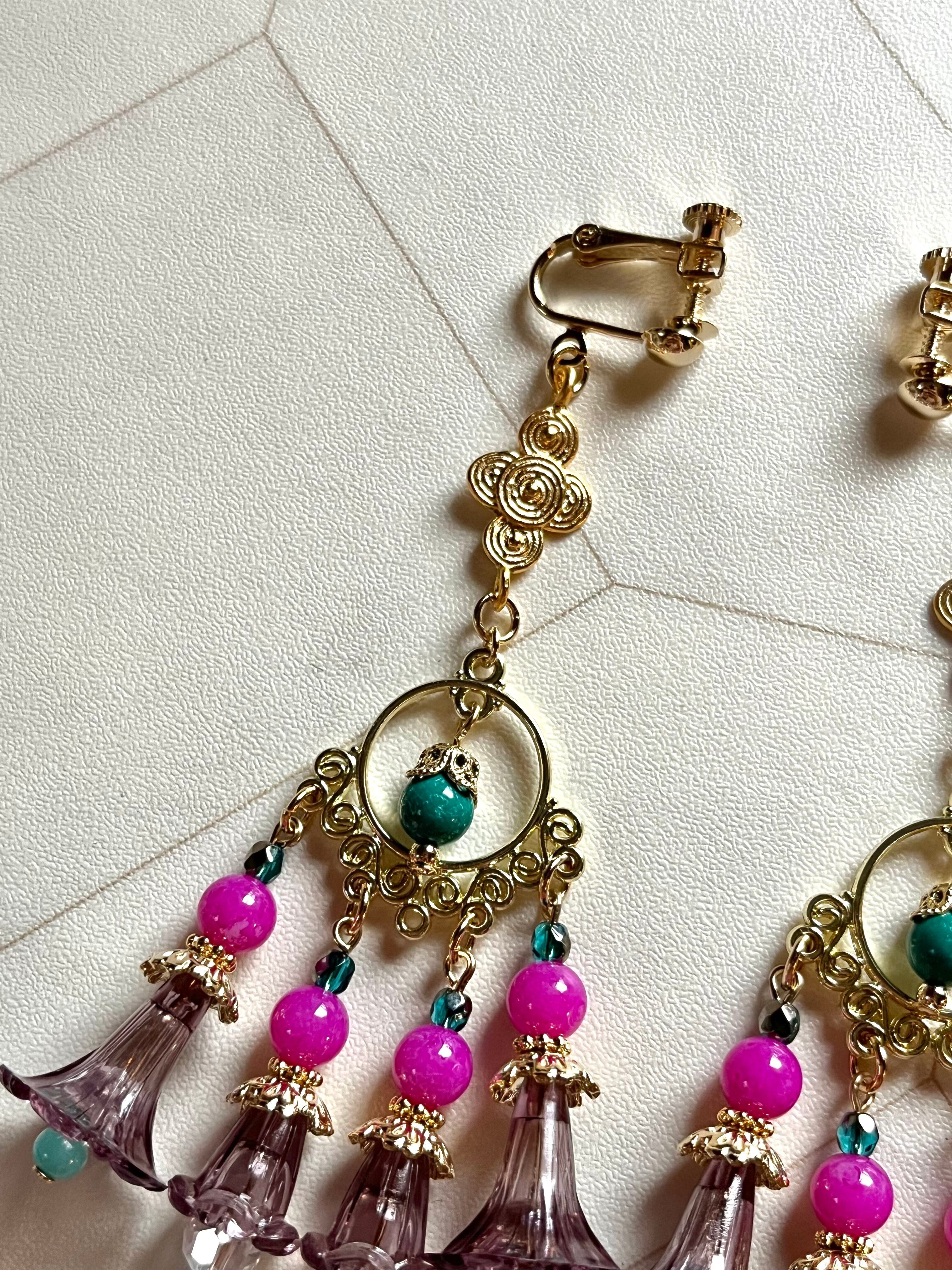 素材:イタリア製硝子ビーズ、キャストパーツ、ドイツ製アクリルビーズ、トルコ製ビーズなど