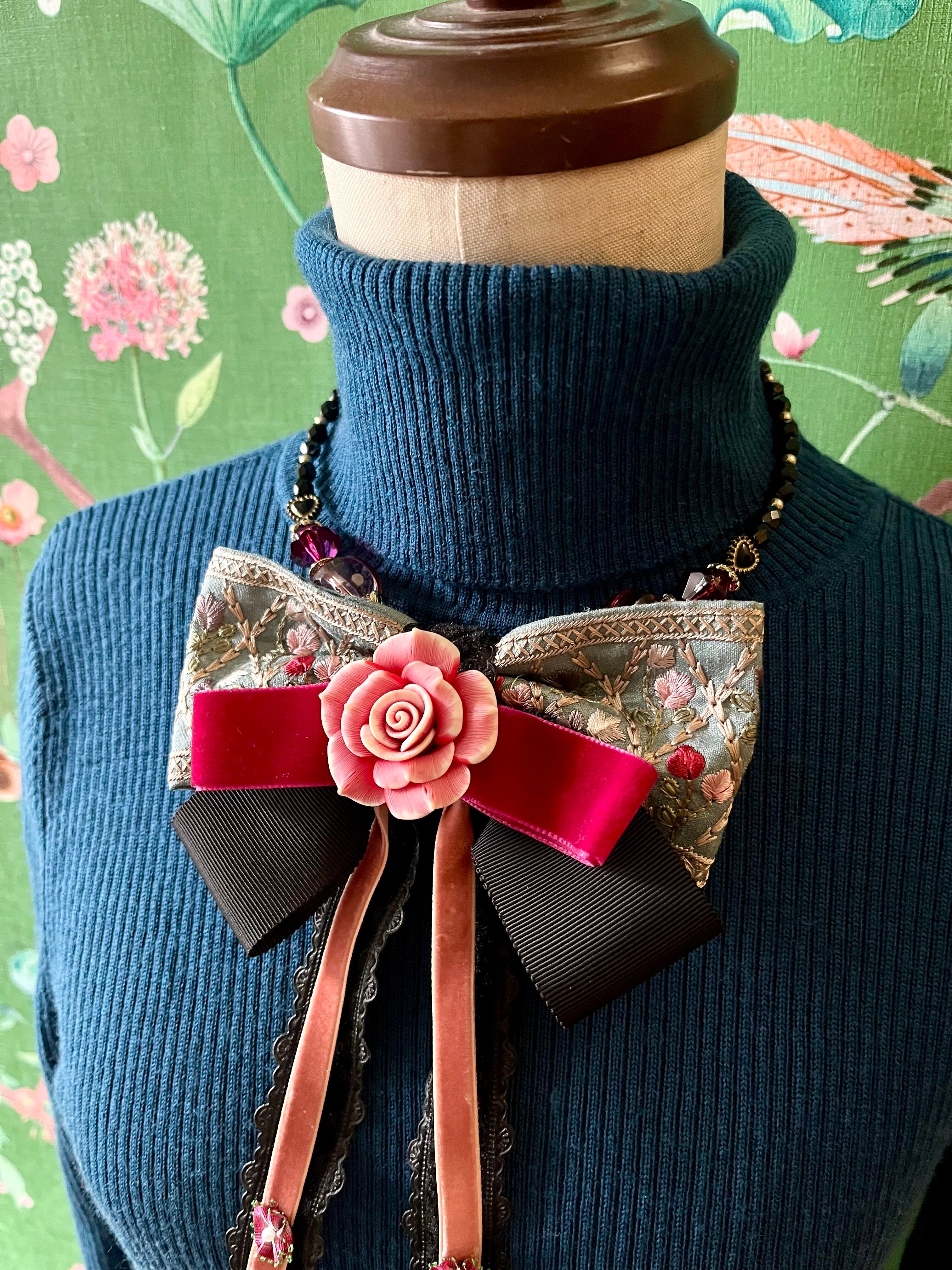 インド刺繍りぼんや織りりぼんを使用し、エキゾチックなリボンタイに仕上げました。