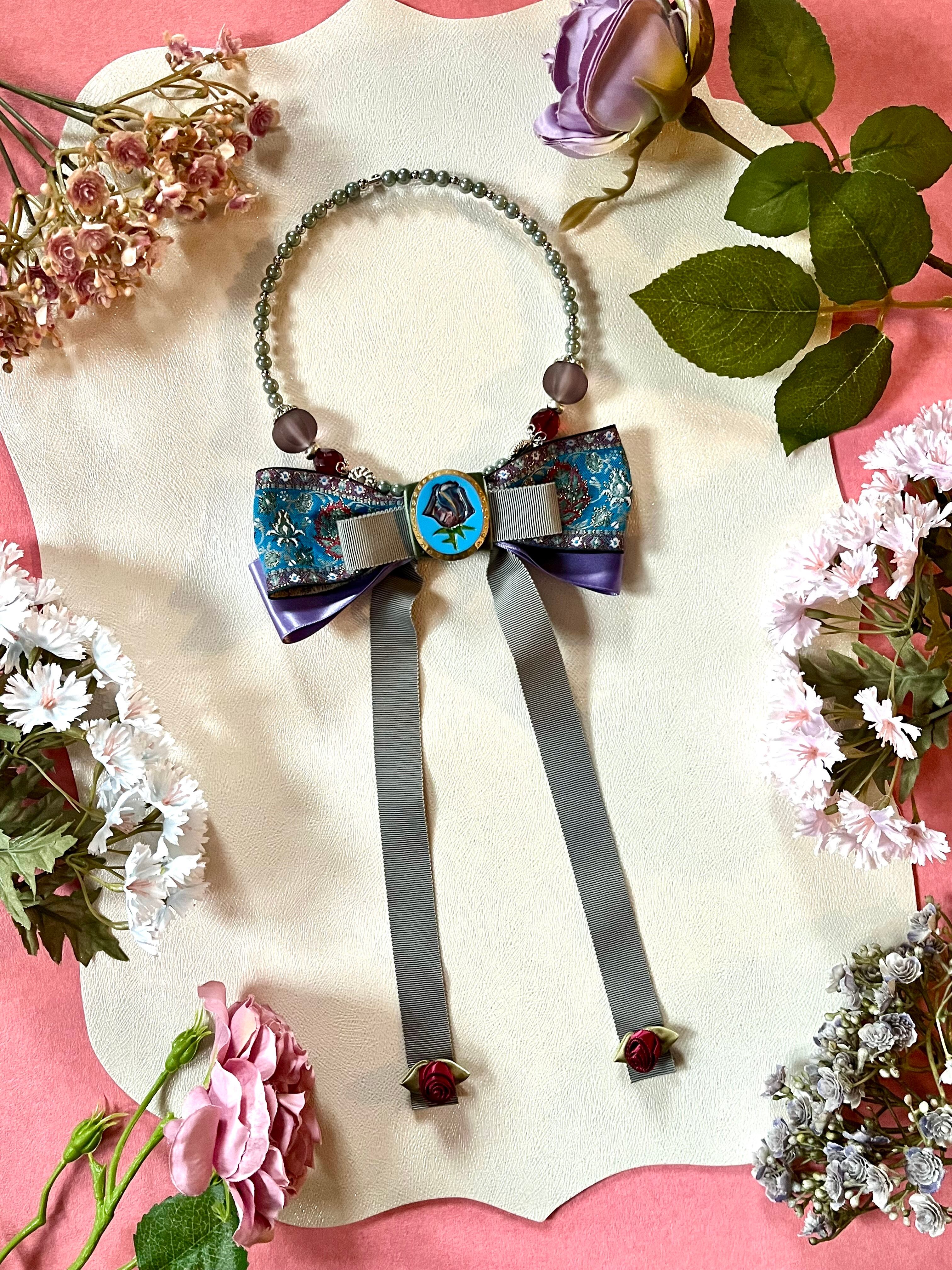 カットソーに合わせて首にりぼんを結ばれた猫ちゃんの様に着けても、ブラウスの襟下に潜らせてフォーマルなリボンタイコーデ風にしても可愛いデザインです。