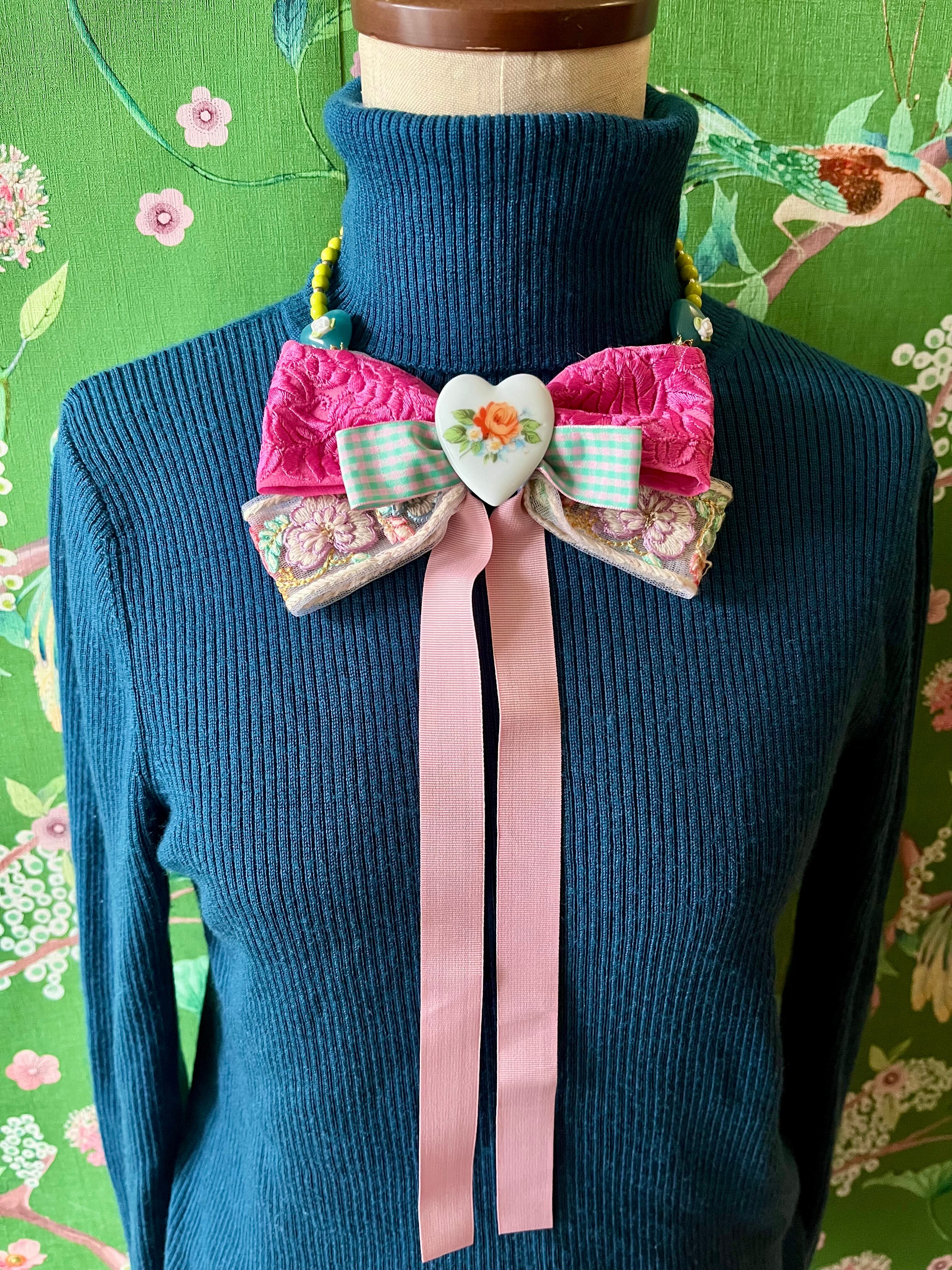 ネックレスの様にカジュアルにリボンタイを着けられるアイテム。