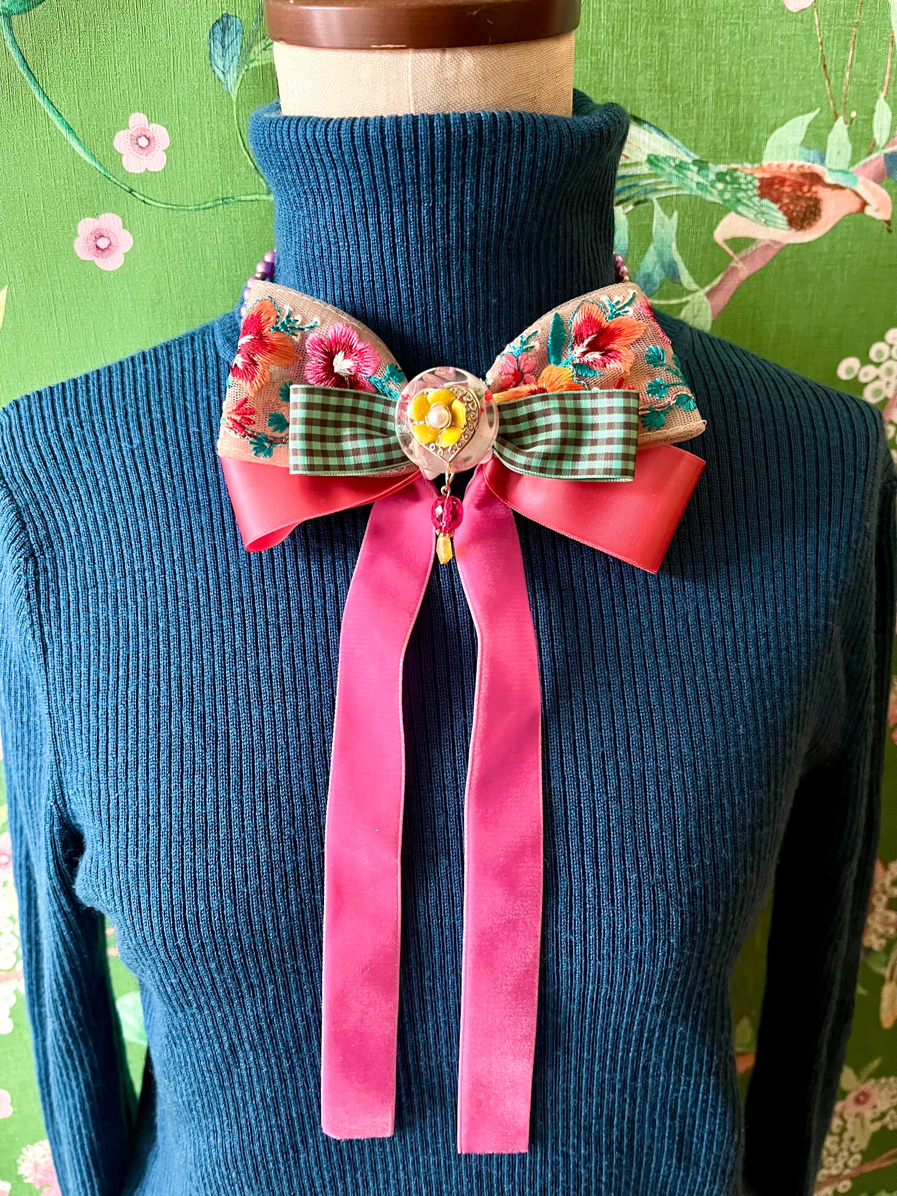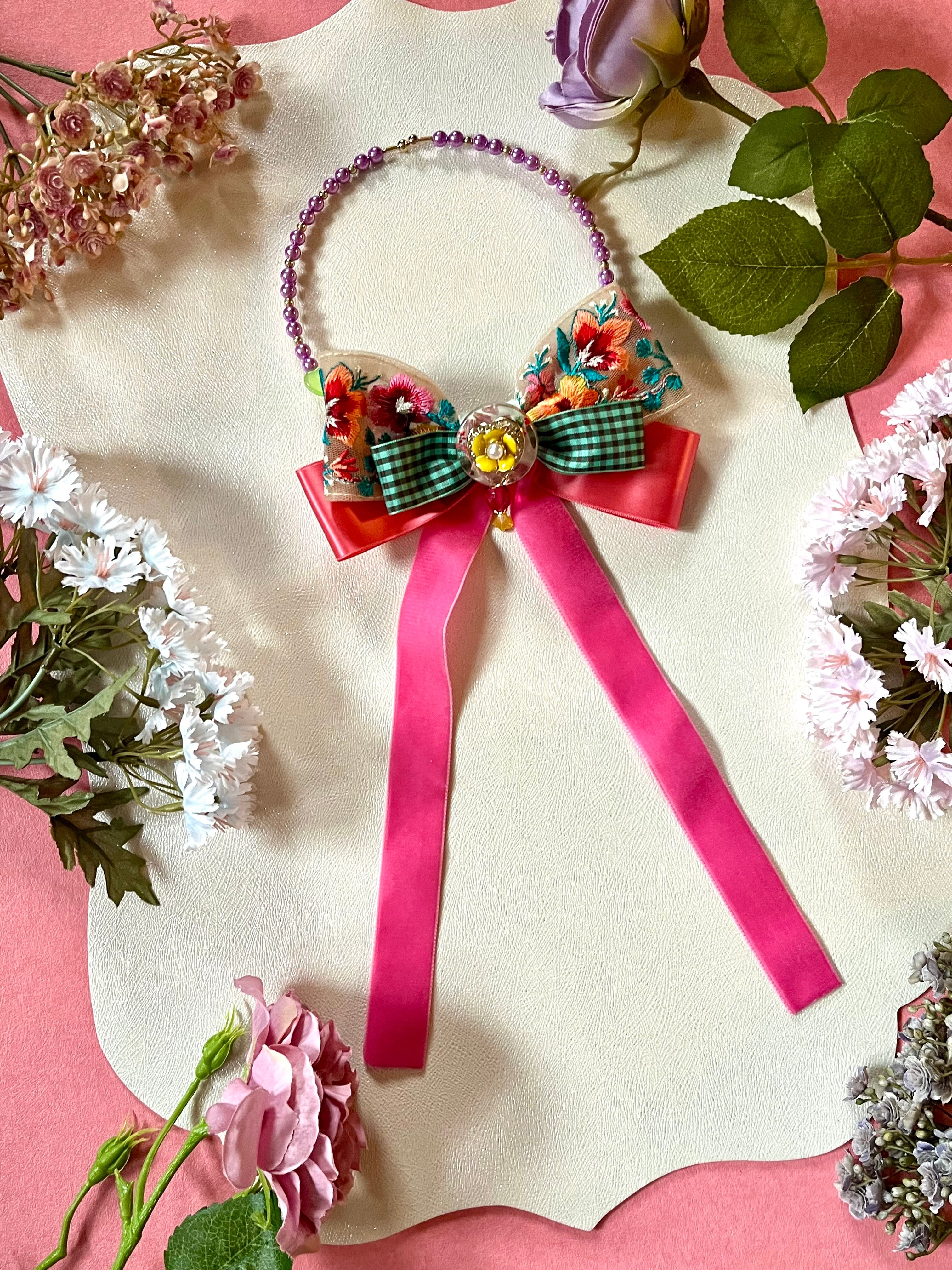 インド刺繍りぼんや織りりぼんを使用し、エキゾチックなリボンタイに仕上げました。