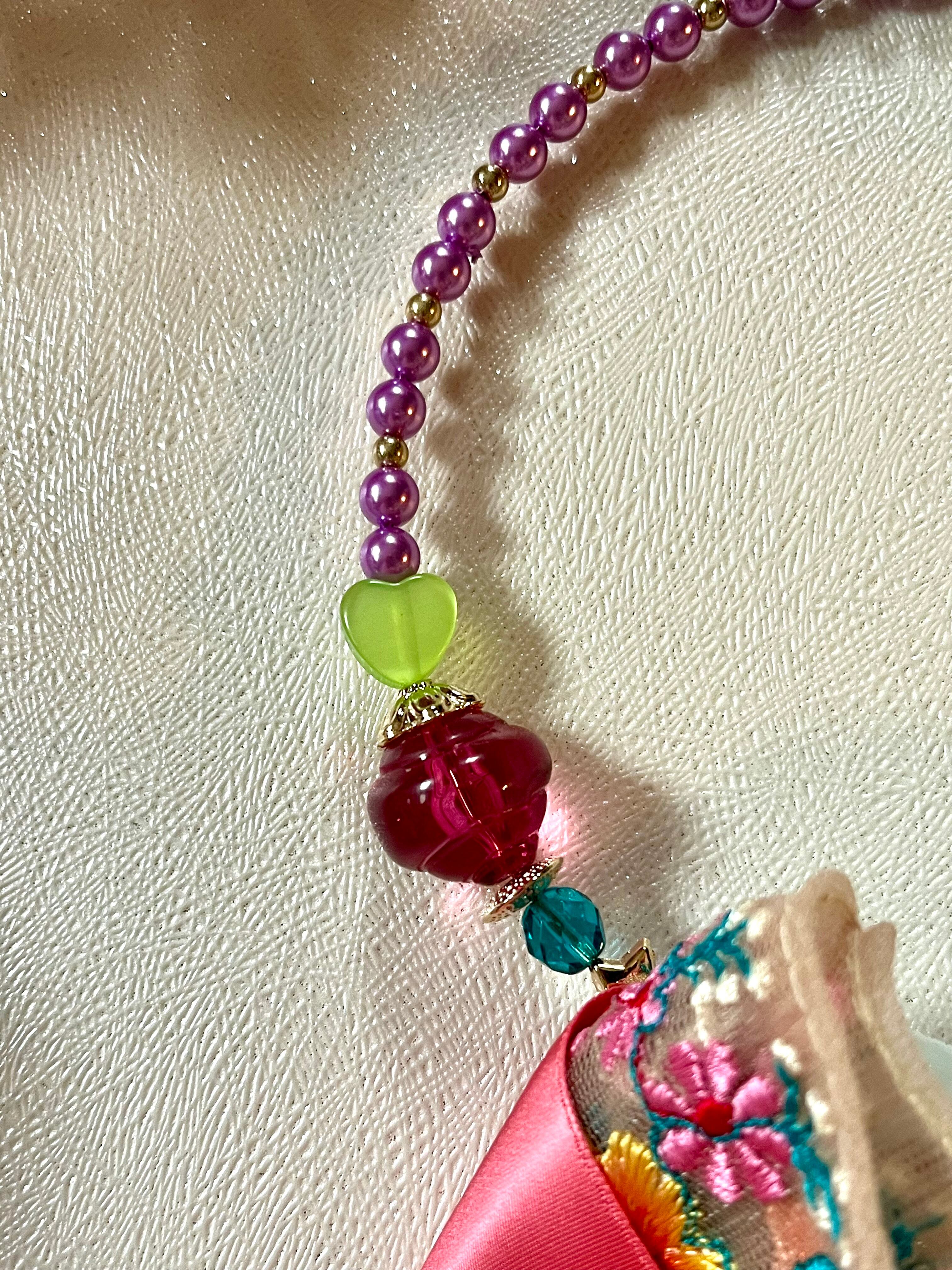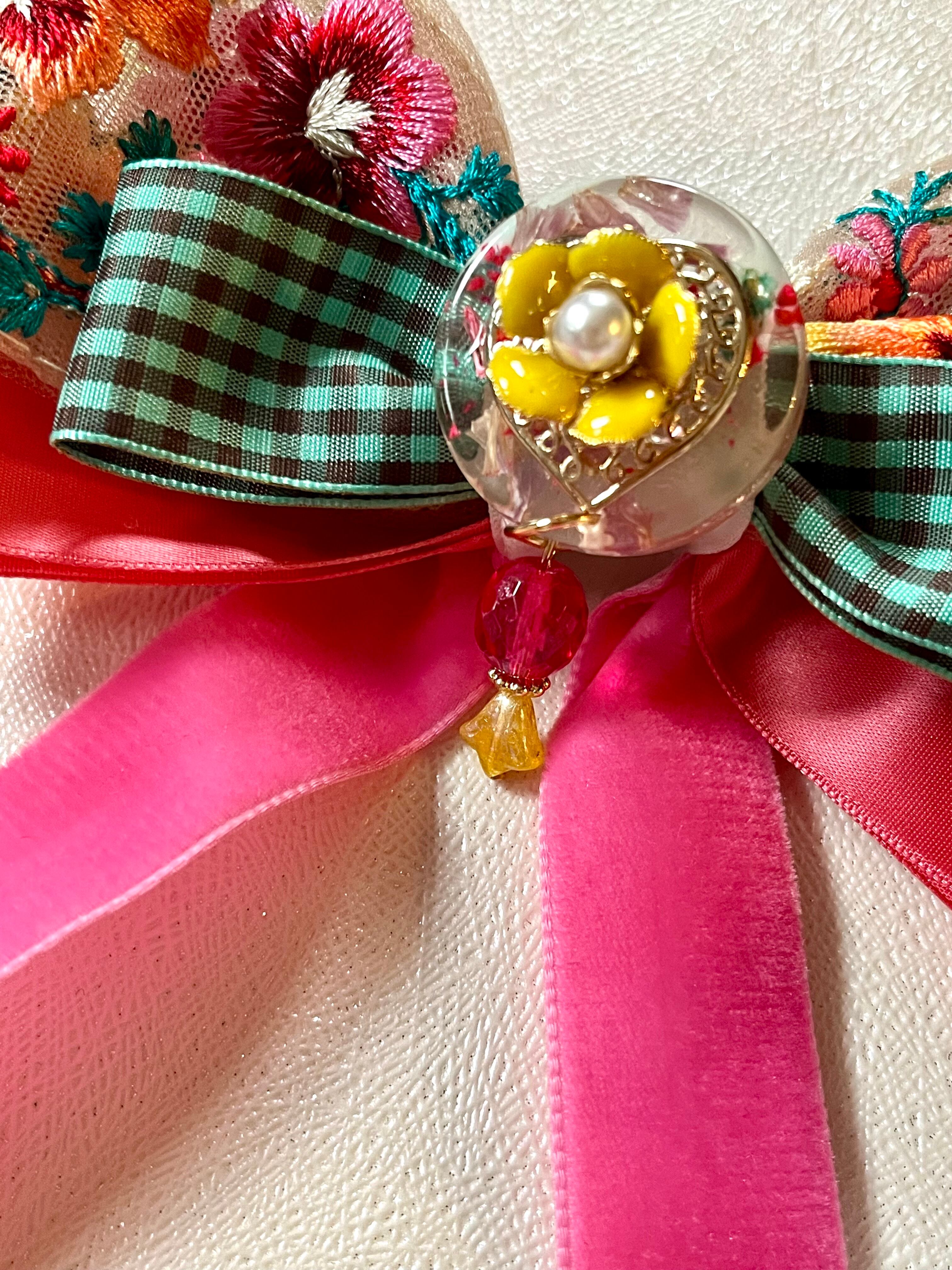 素材:インド刺繍りぼん、サテンりぼん、アクリルビーズ、プラスチックパールなど