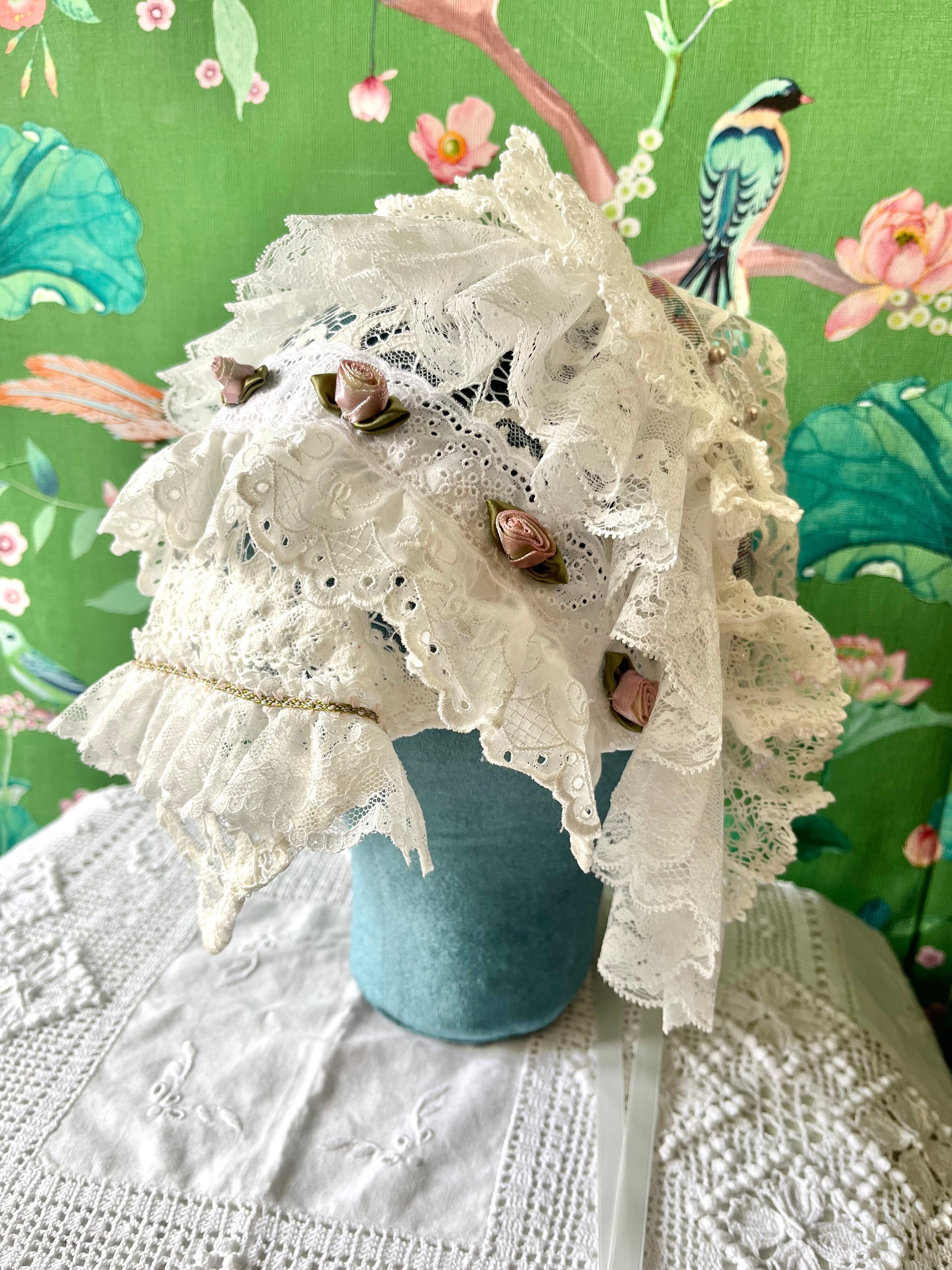 サイズ:顔周り約55cm、レース含む高さ約32cm
