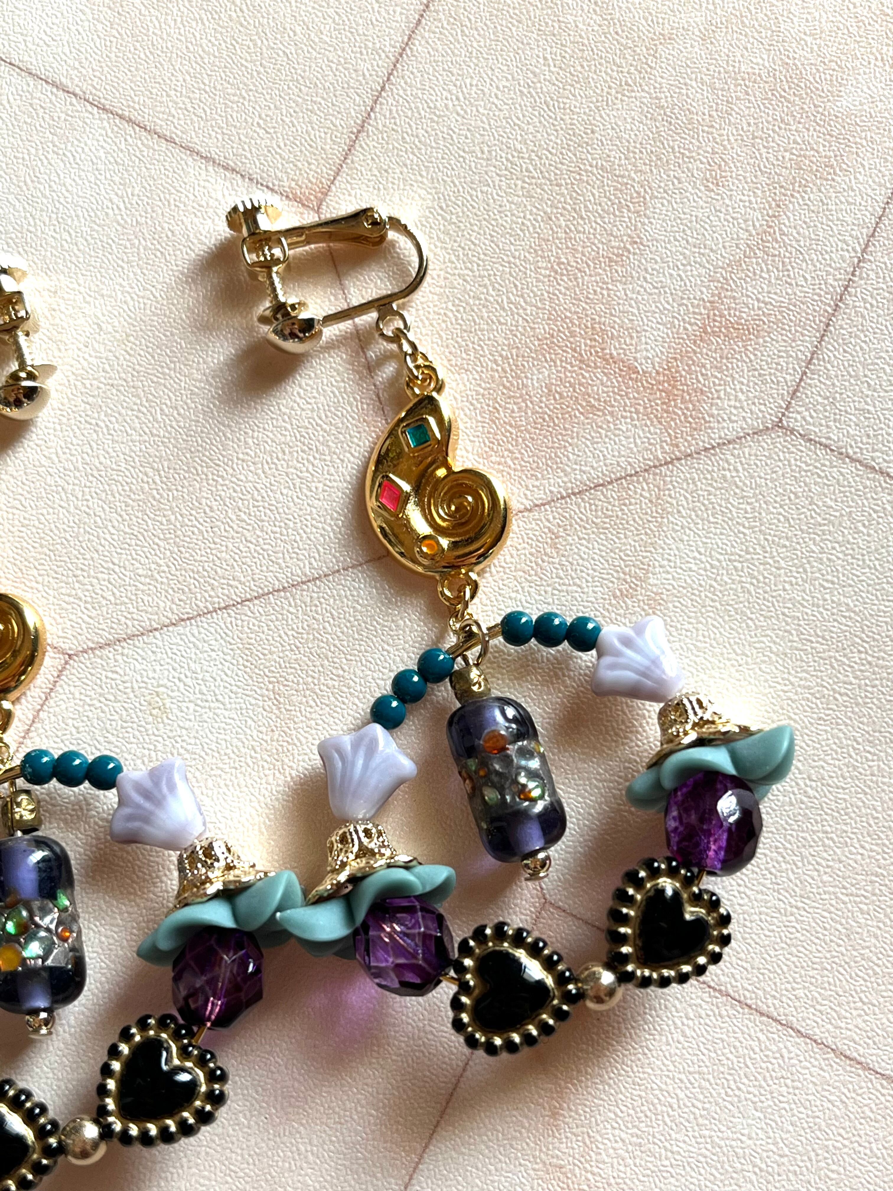 素材:チェコガラスビーズ、台湾仕入れランプビーズ、イタリア製チャーム、ドイツアクリルビーズ、キャストパーツなど