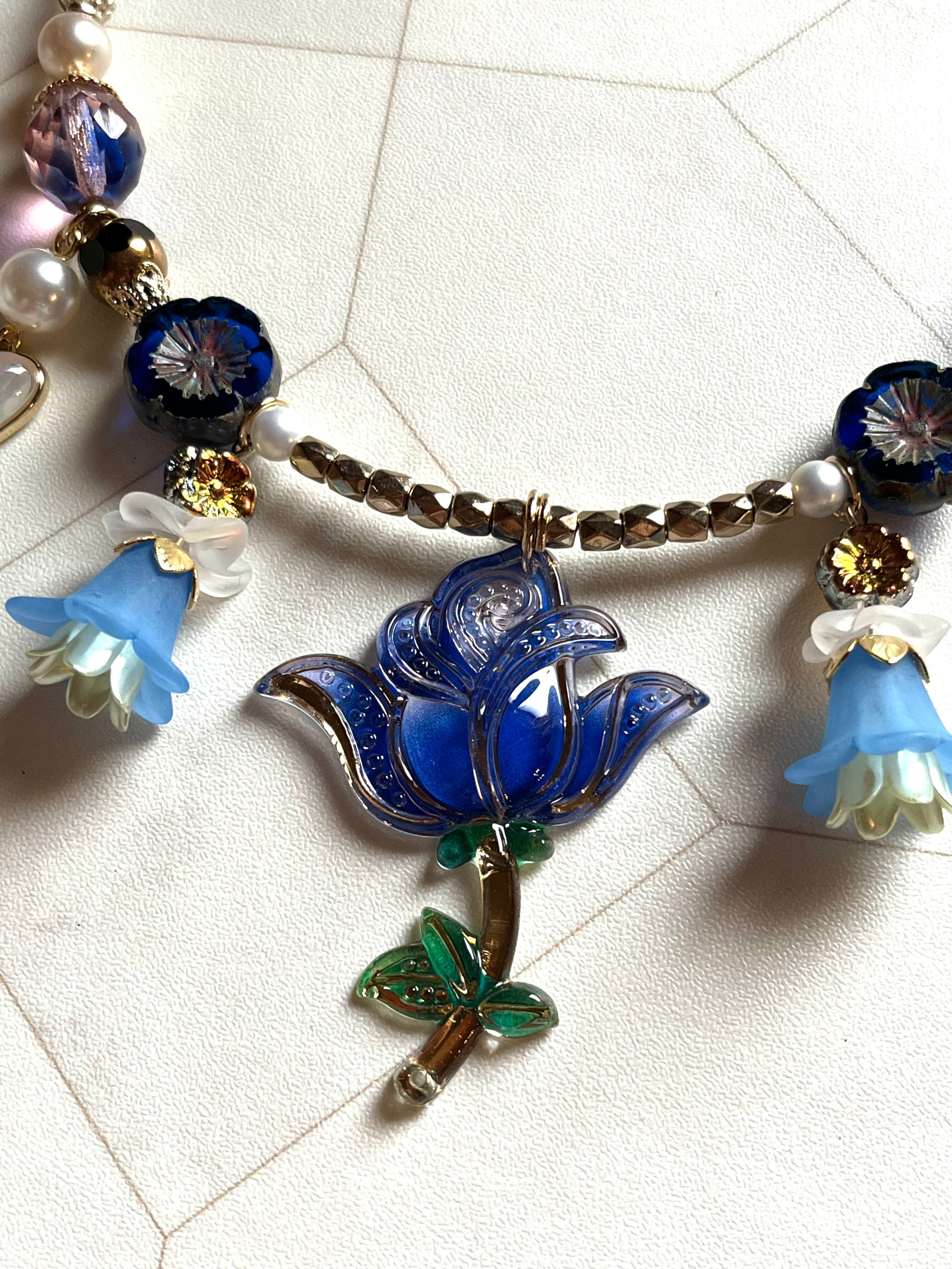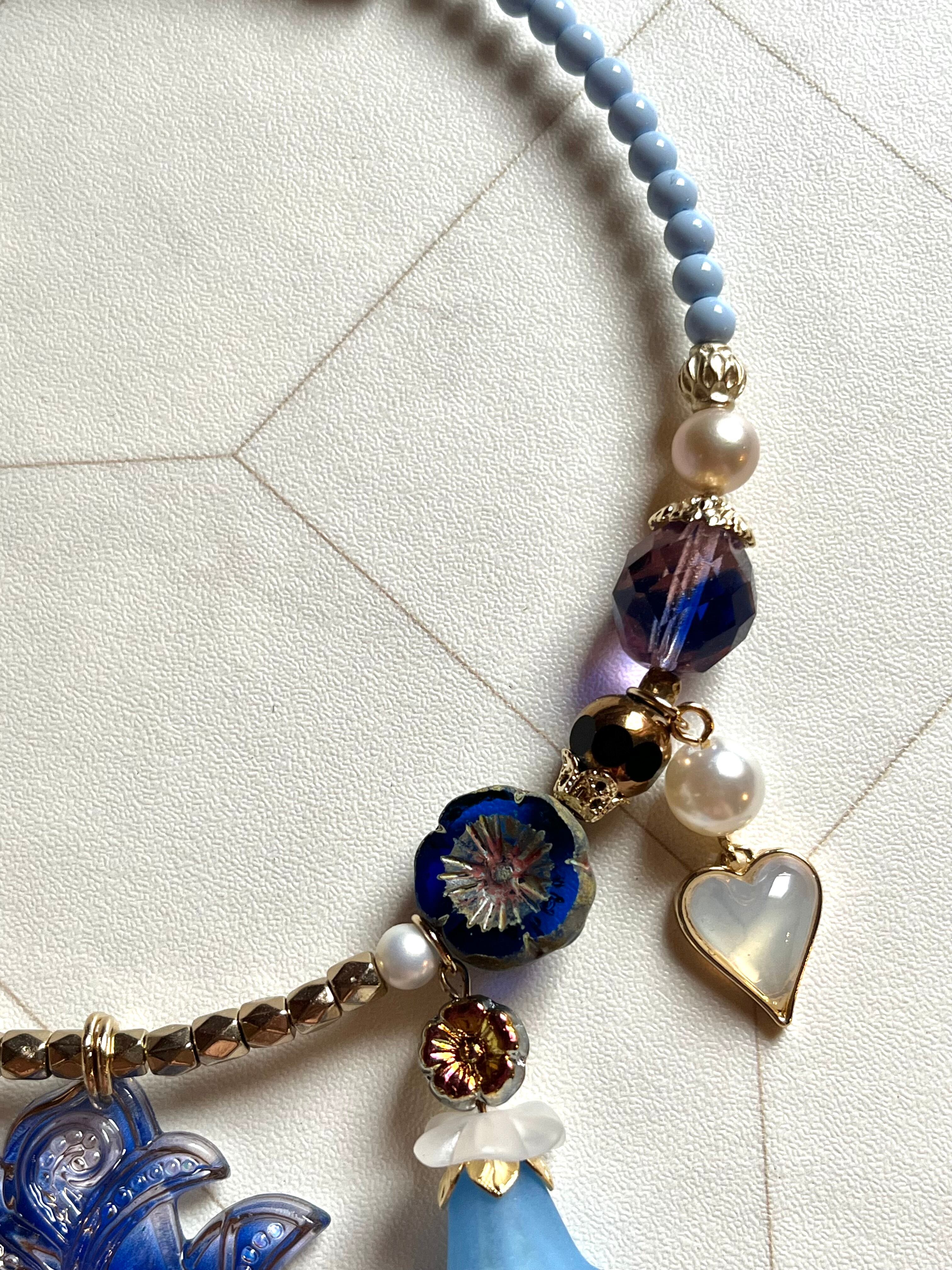 素材:ビンテージガラスビーズ、チェコガラスビーズ、プラスチックビーズ、キャストパーツなど