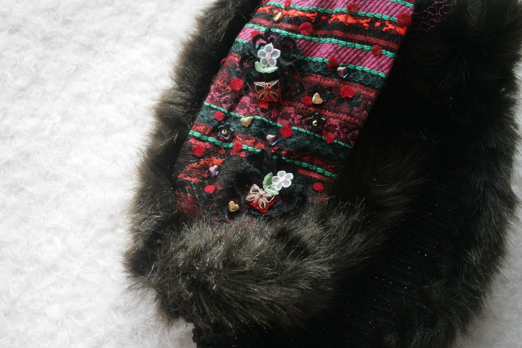 ark forestをイメージした、薄暗い花々と獣の毛のbigヘアバンド