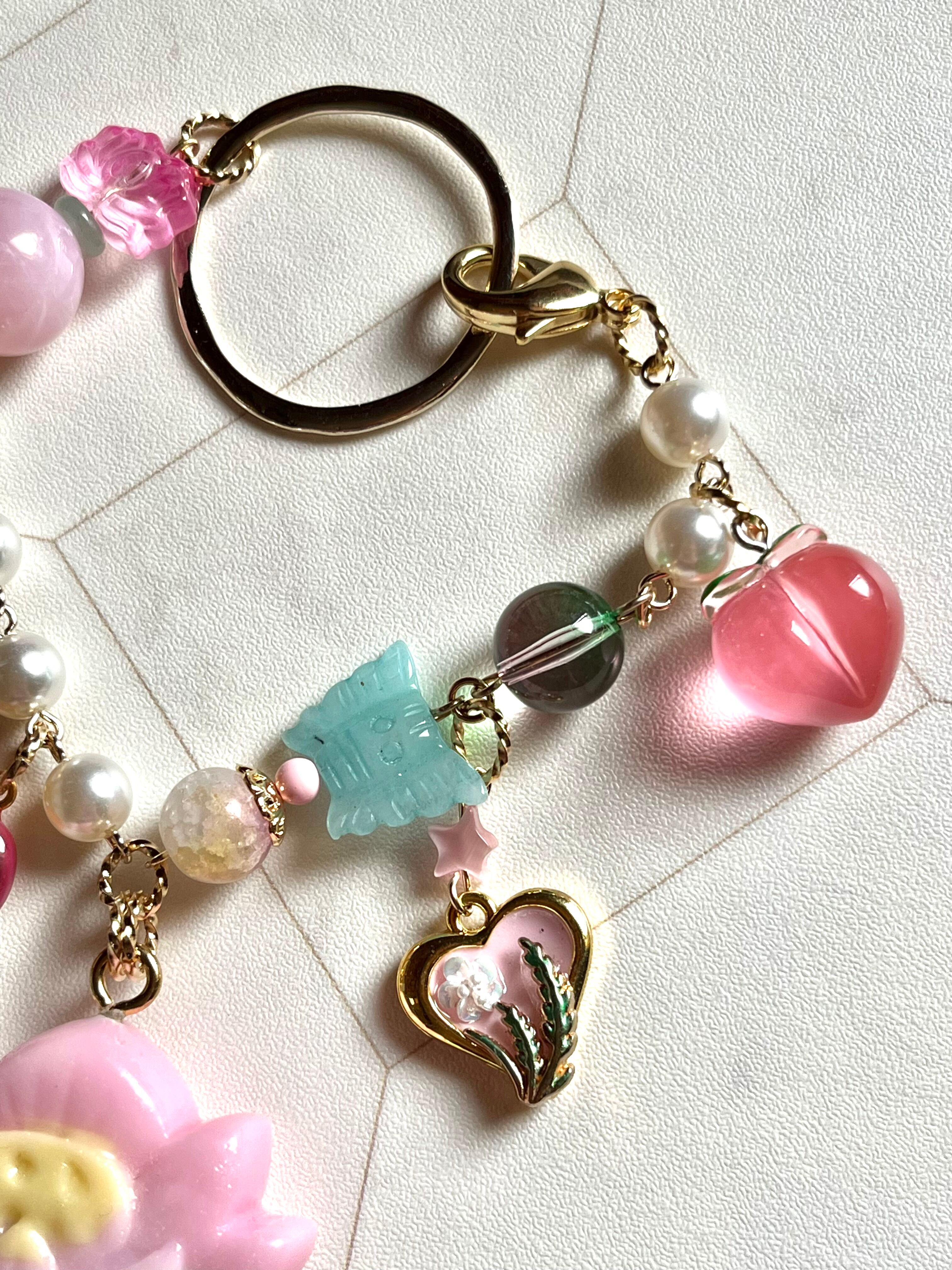 素材:日本製アクリルビーズ、硝子ビーズ、プラビーズ、キャストパーツ、タッセルなど