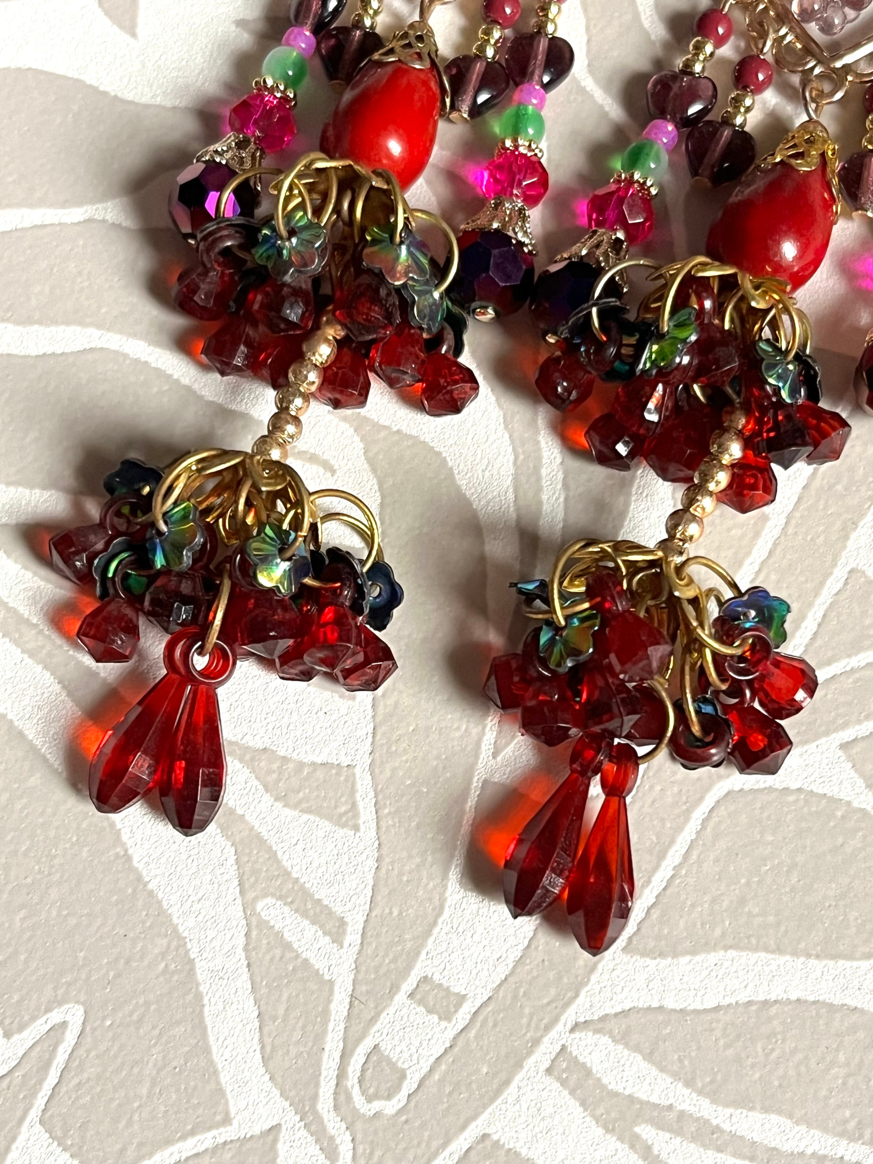 素材:キャストパーツ、プラスチックビーズ、ガラスビーズ、インド製ビーズタッセル、チェコガラスビーズなど