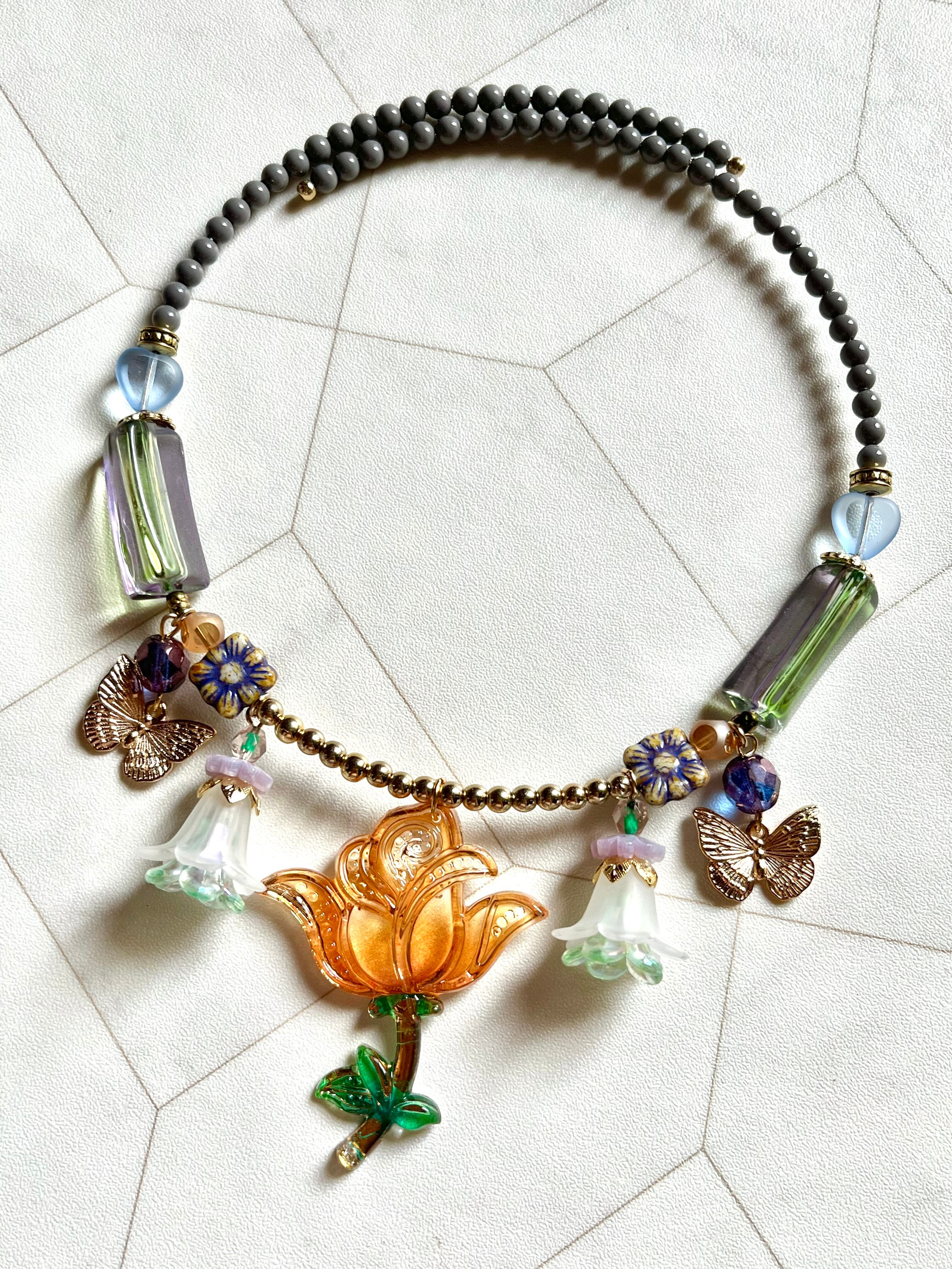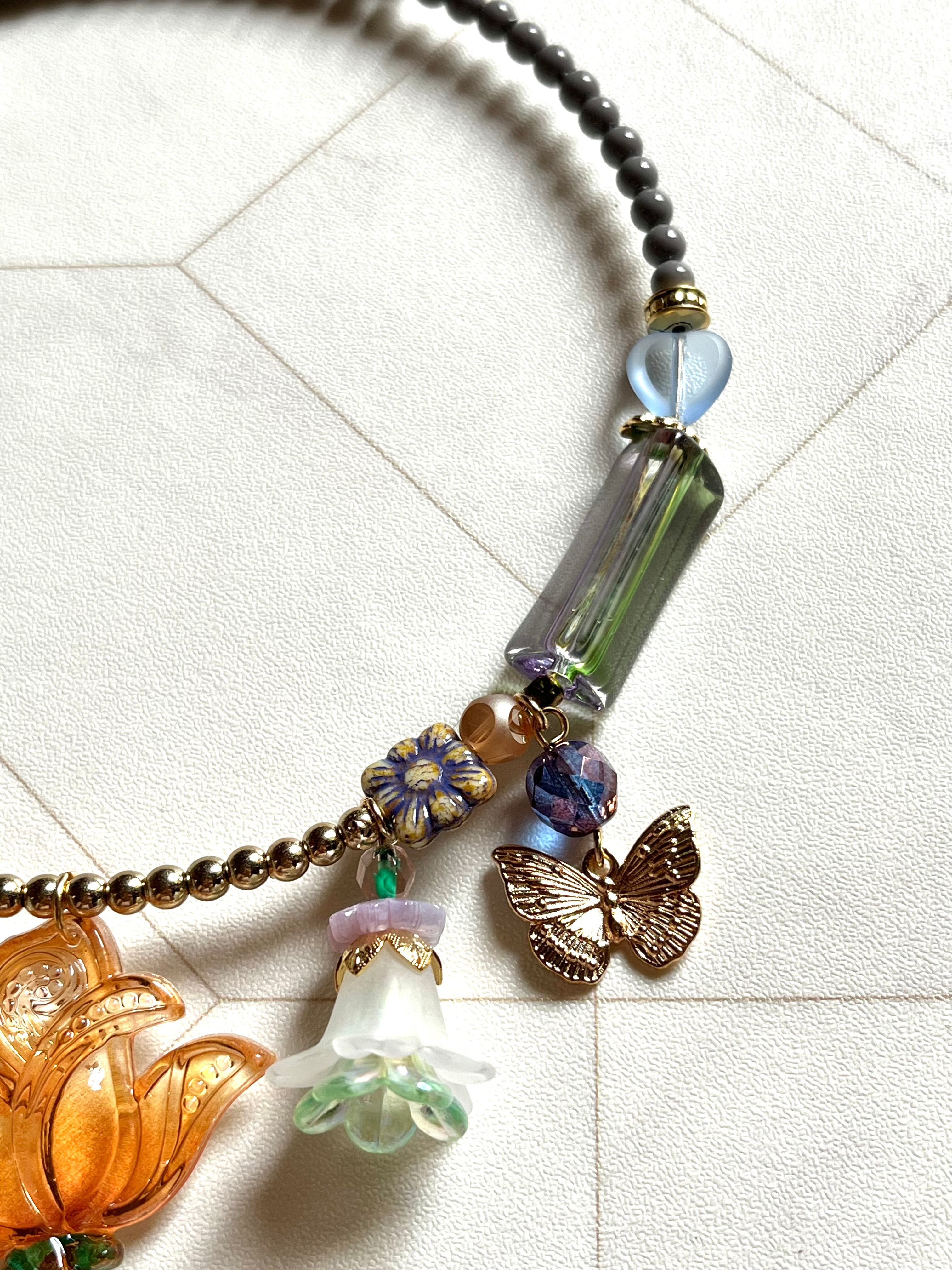 素材:ガラスビーズ、チェコガラスビーズ、プラスチックビーズ、キャストパーツ、アクリルビーズなど