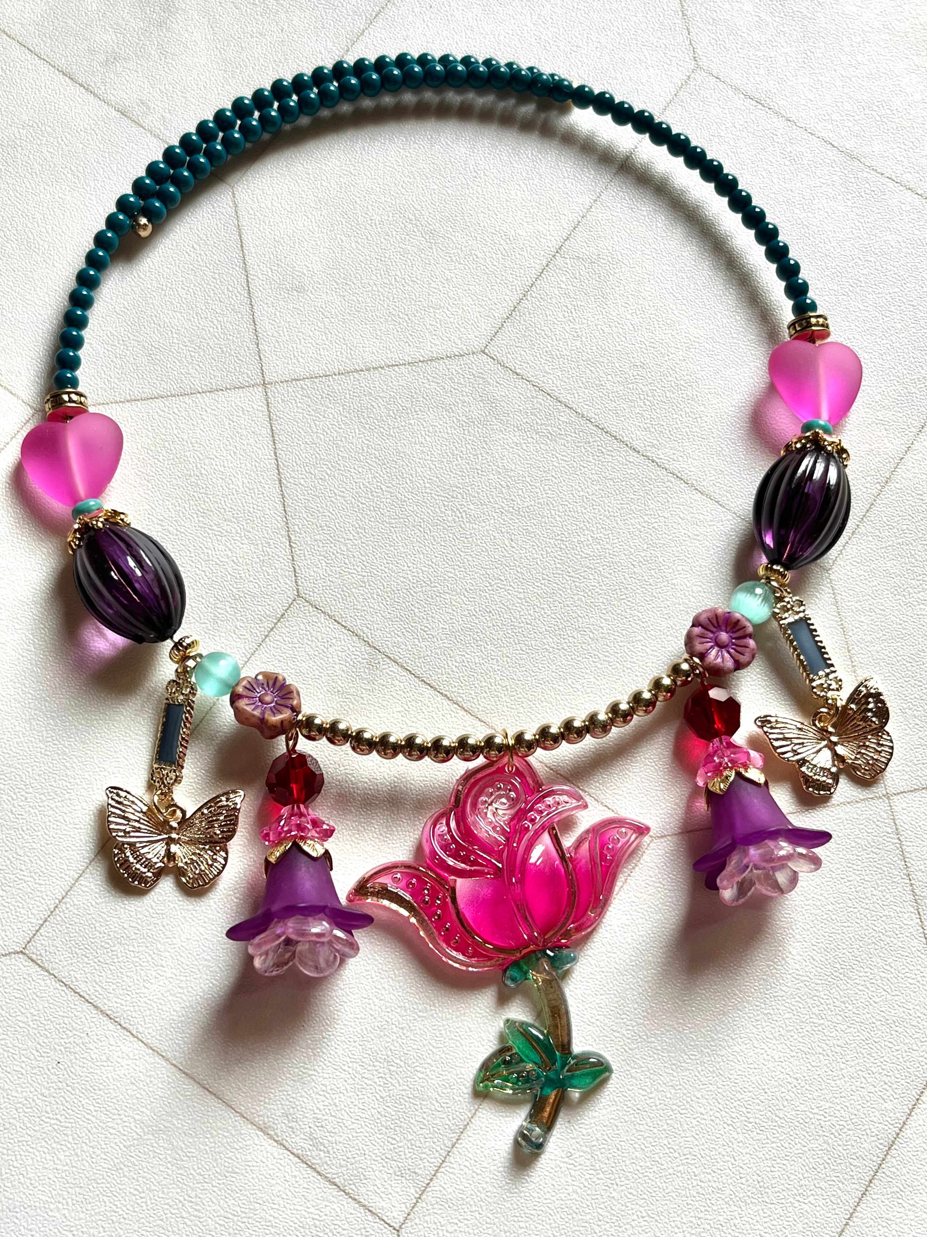 素材:ガラスビーズ、チェコガラスビーズ、プラスチックビーズ、キャストパーツ、アクリルビーズなど