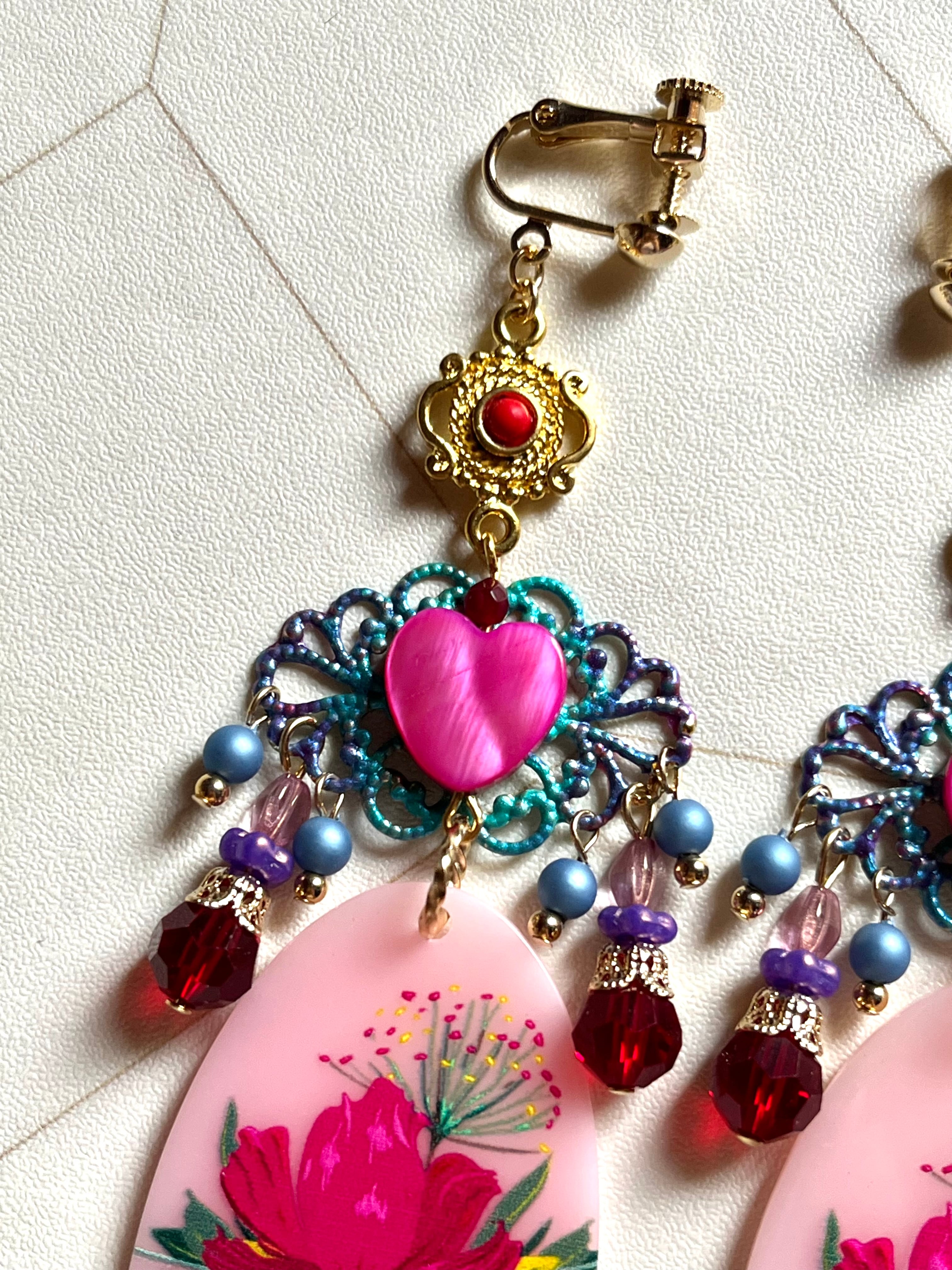 素材:キャストパーツ、プラスチックビーズ、チェコガラスビーズ、シェルビーズなど