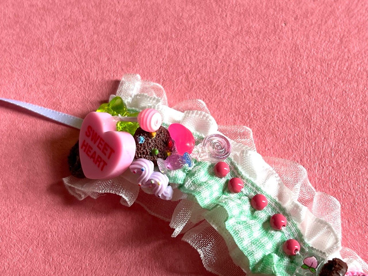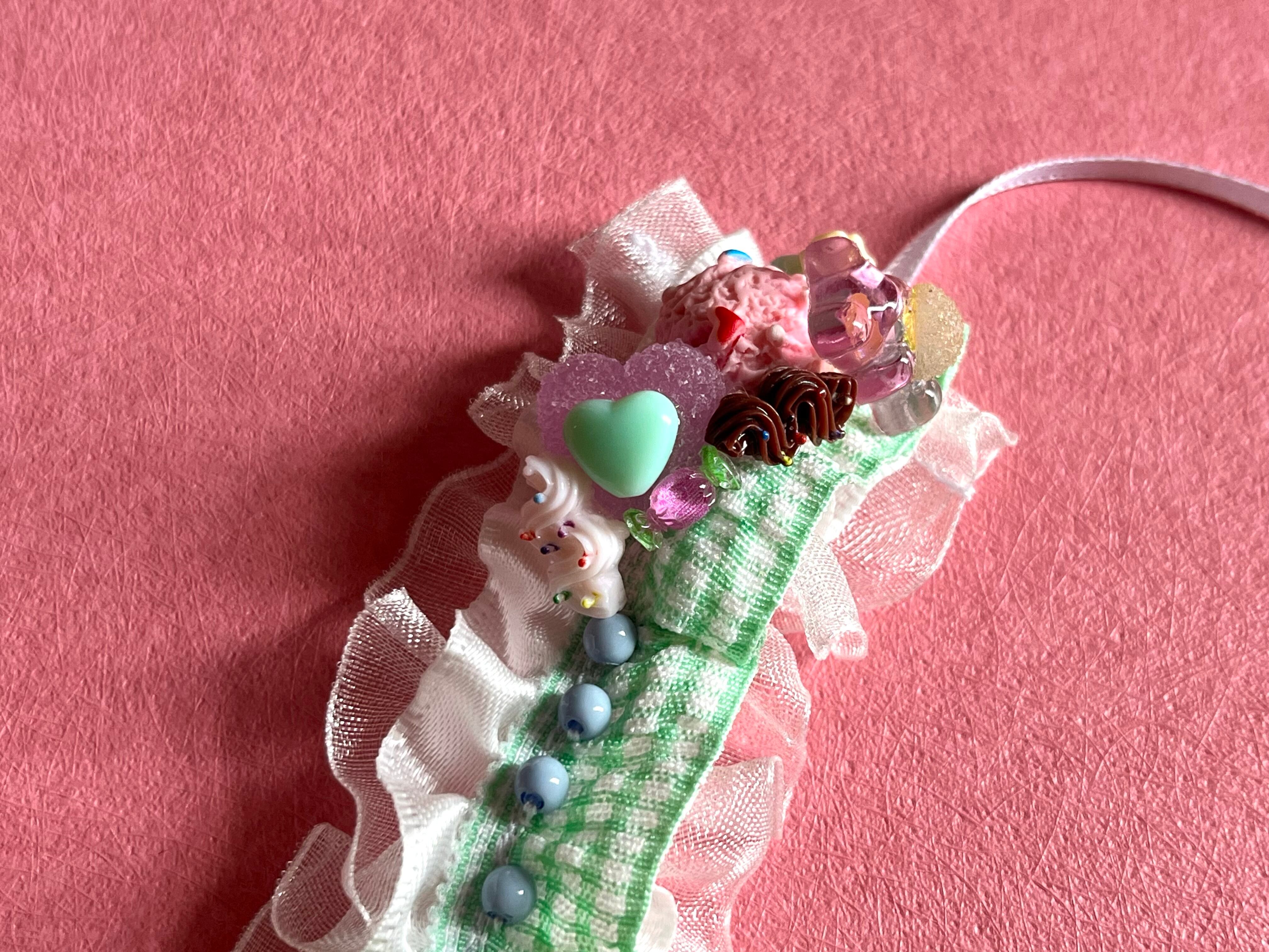 sweets飾りはジェル接着剤でとめています。