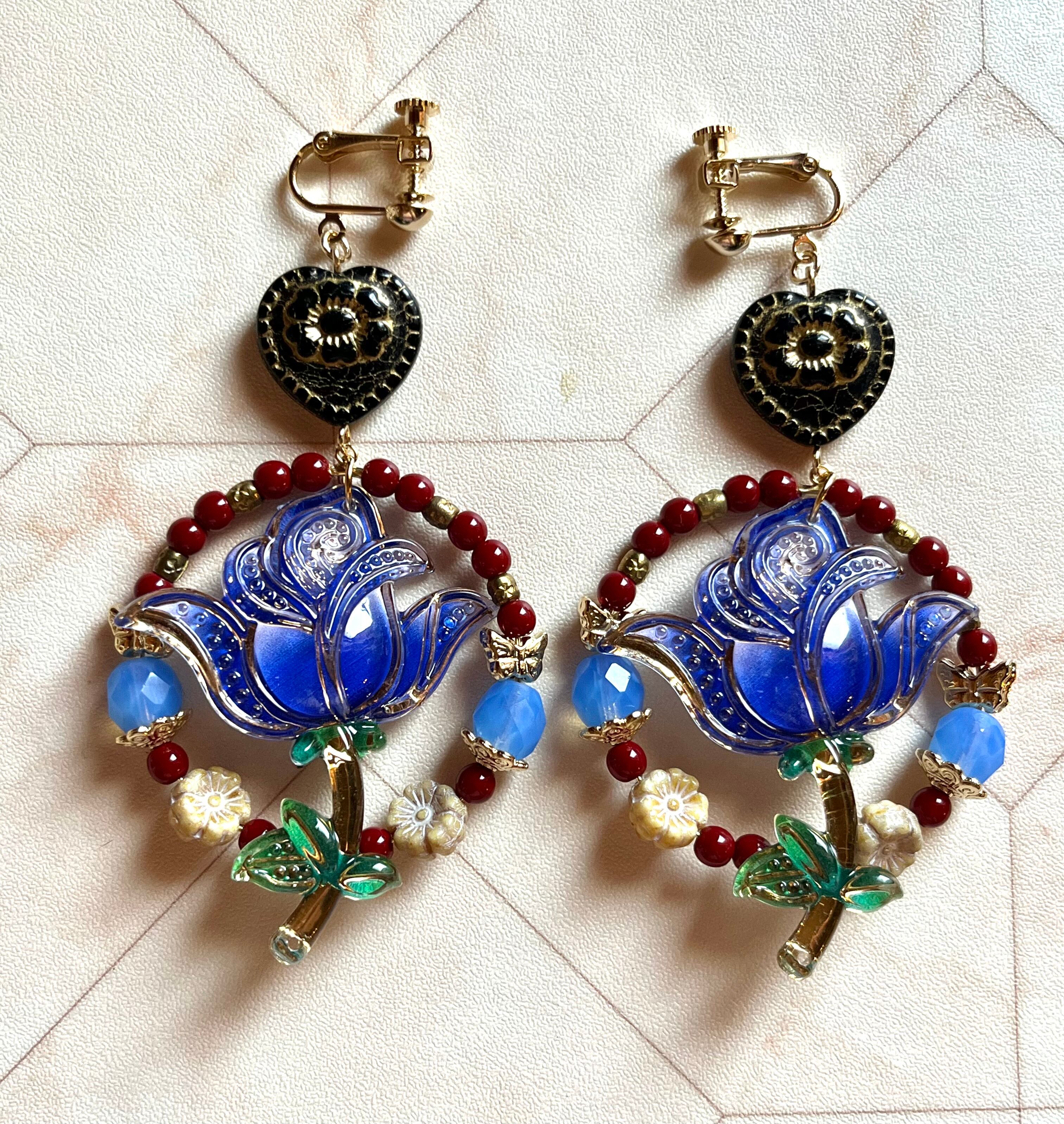 薔薇チャームはplastic製のため、大ぶりですが見た目より軽いデザインになっています。