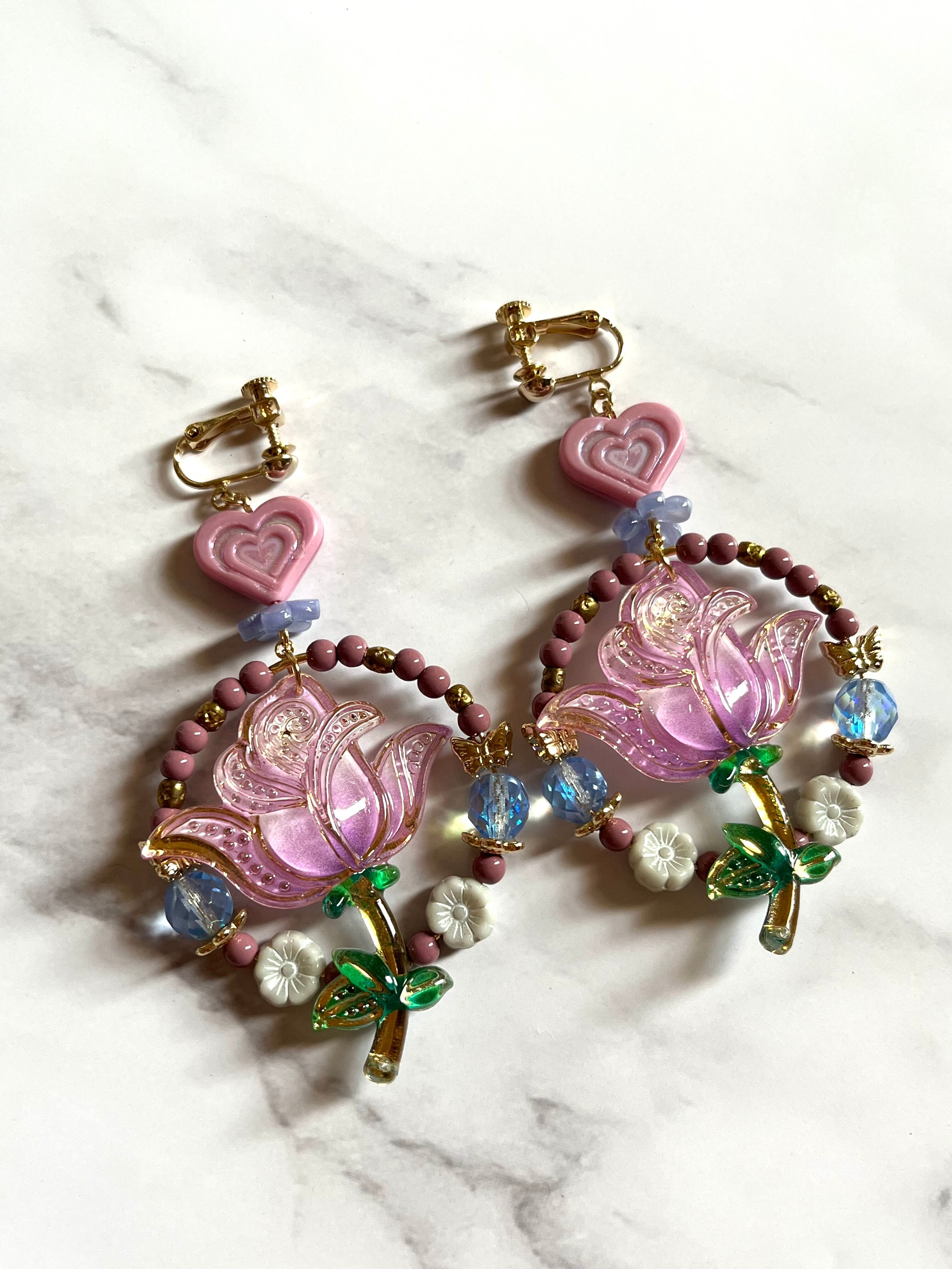 薔薇チャームはplastic製のため、大ぶりですが見た目より軽いデザインになっています。