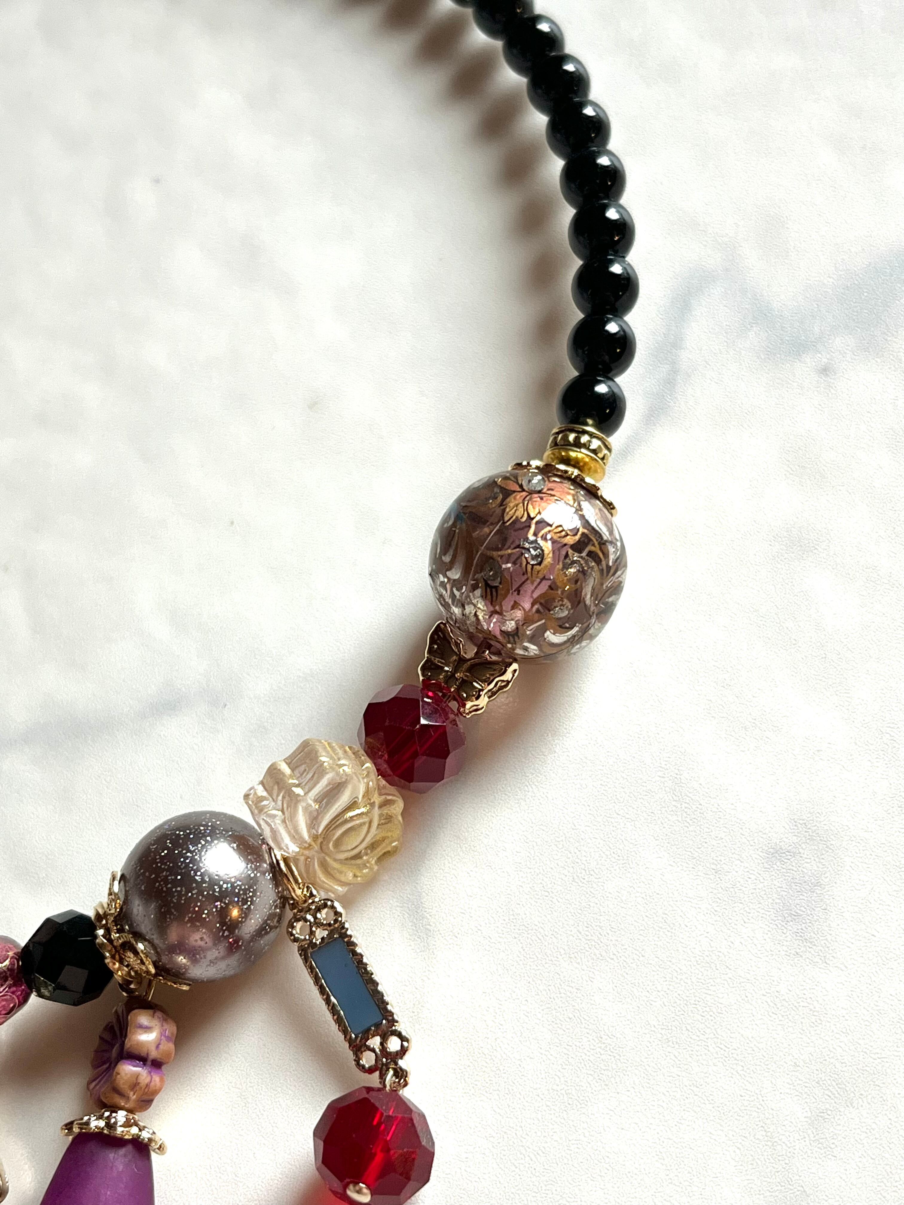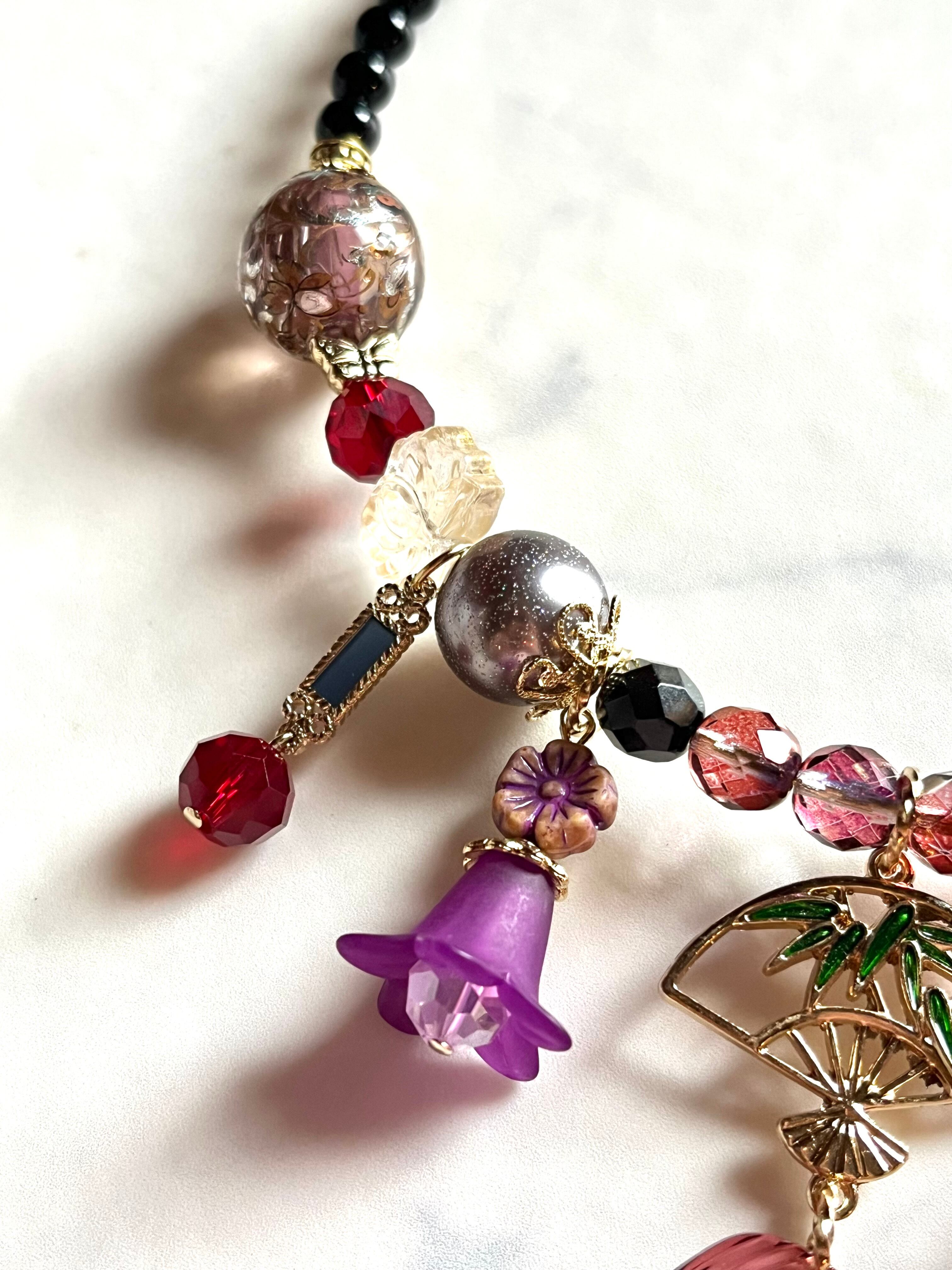 素材:チェコ硝子ビーズ、キャストパーツ、プラビーズなど