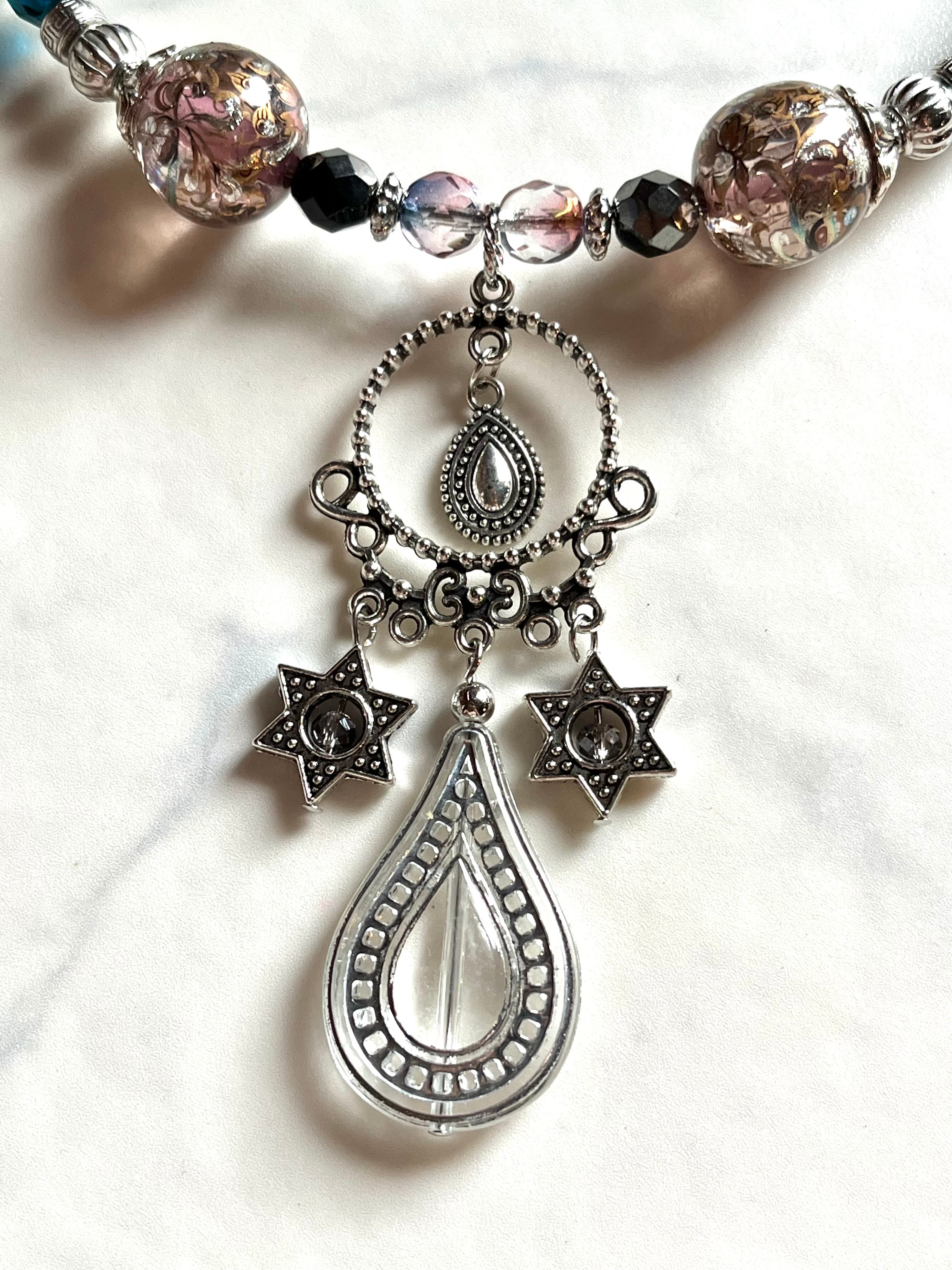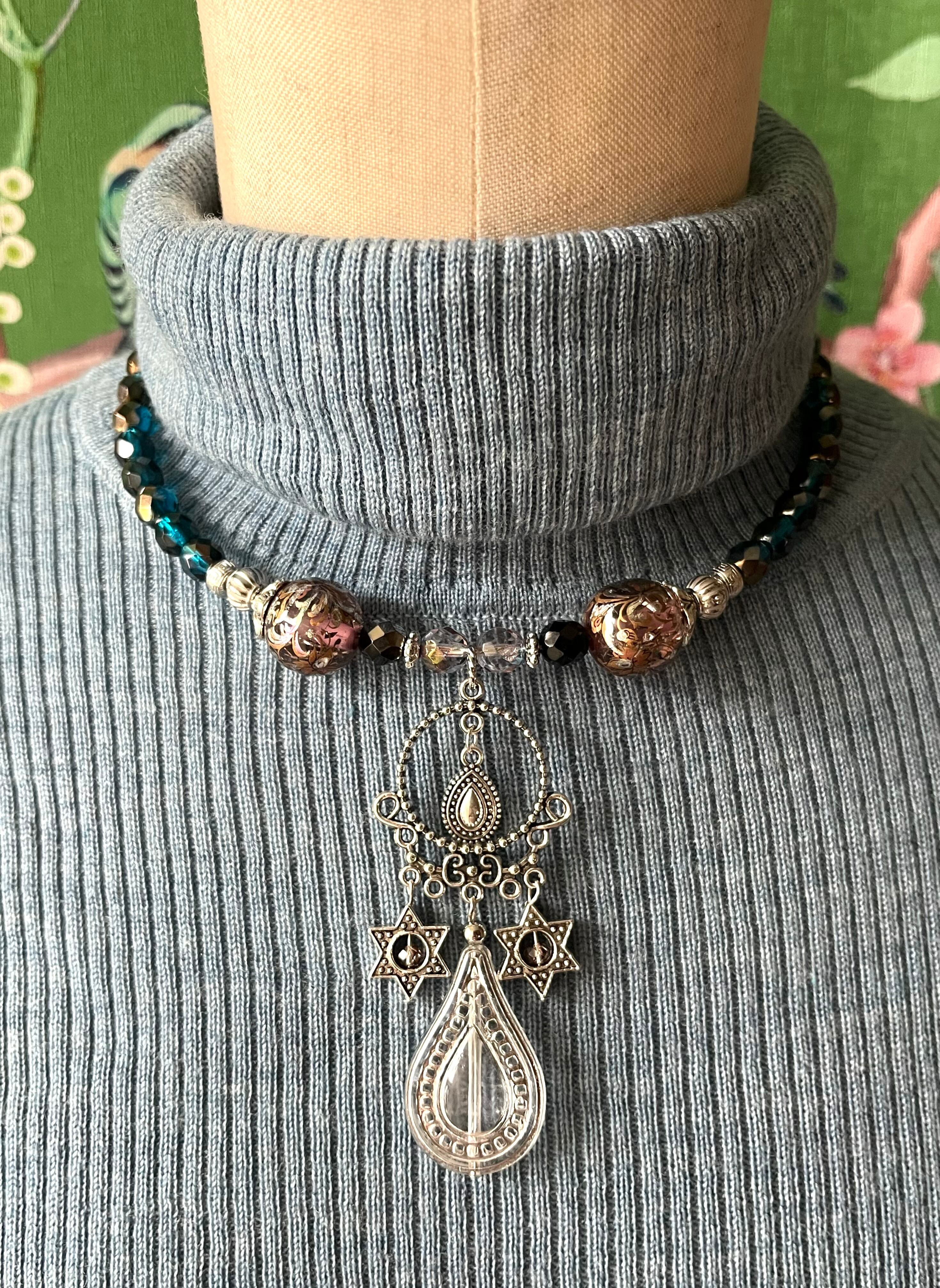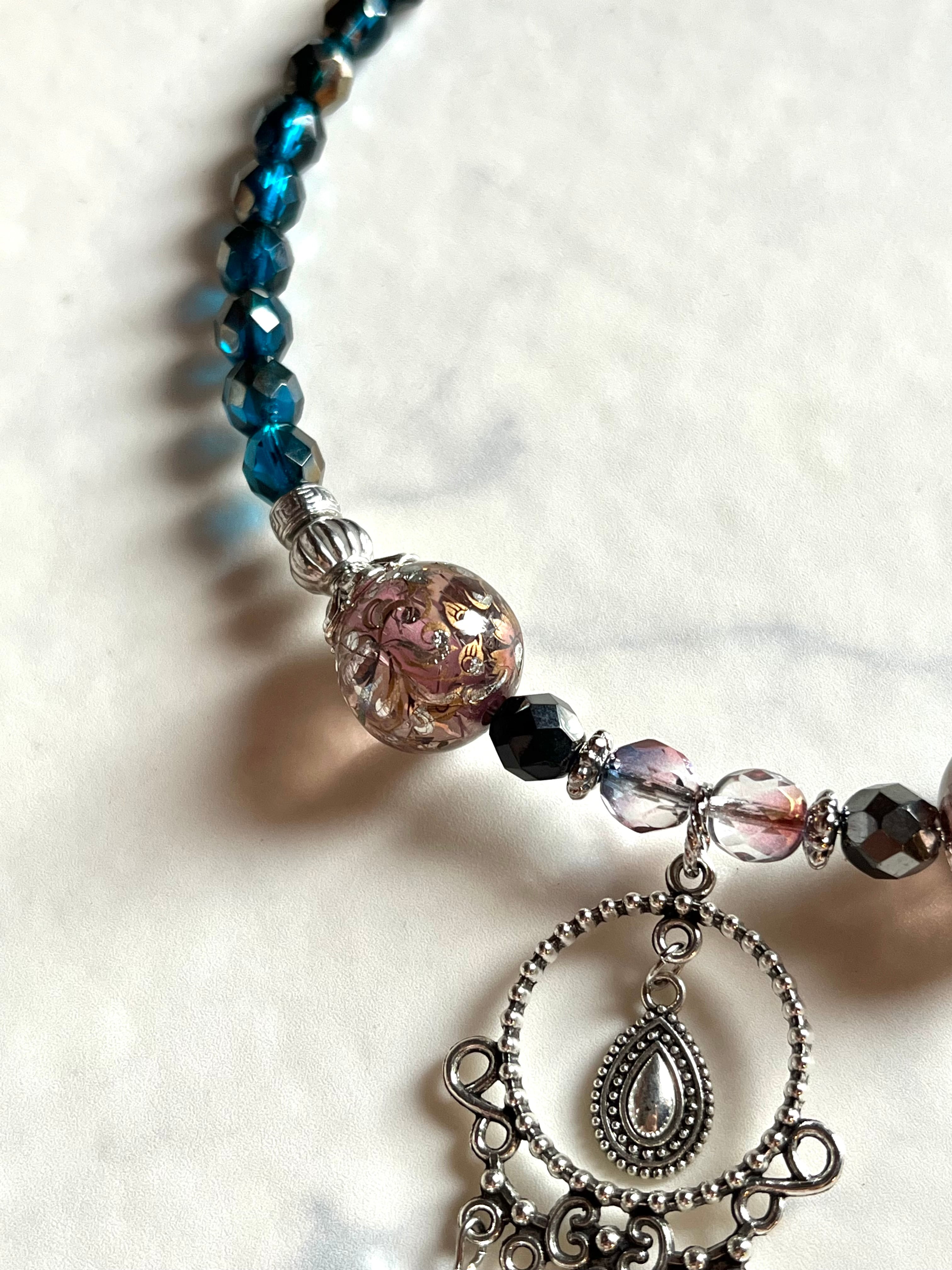 素材:チェコ硝子ビーズ、キャストパーツ、プラビーズなど