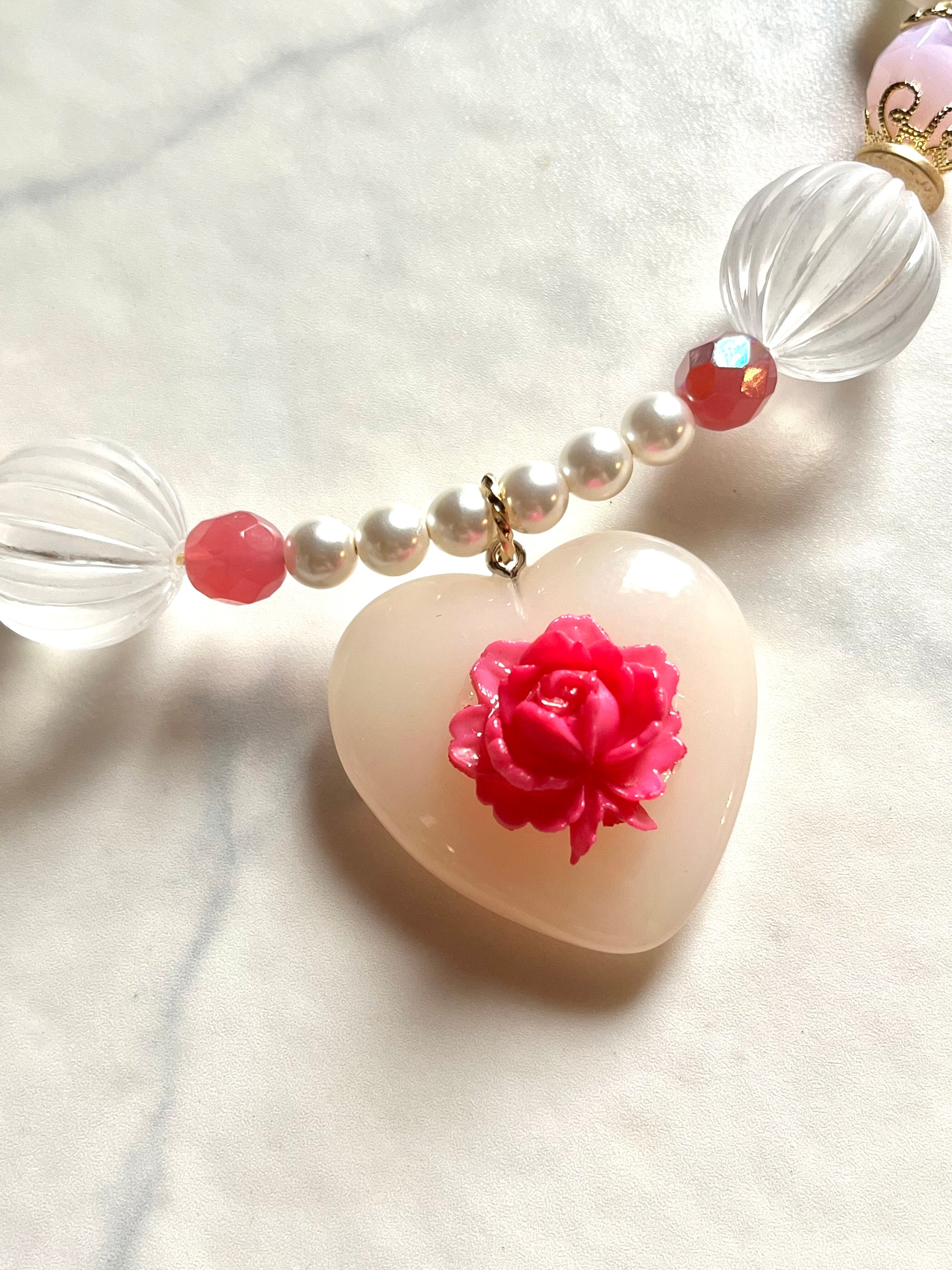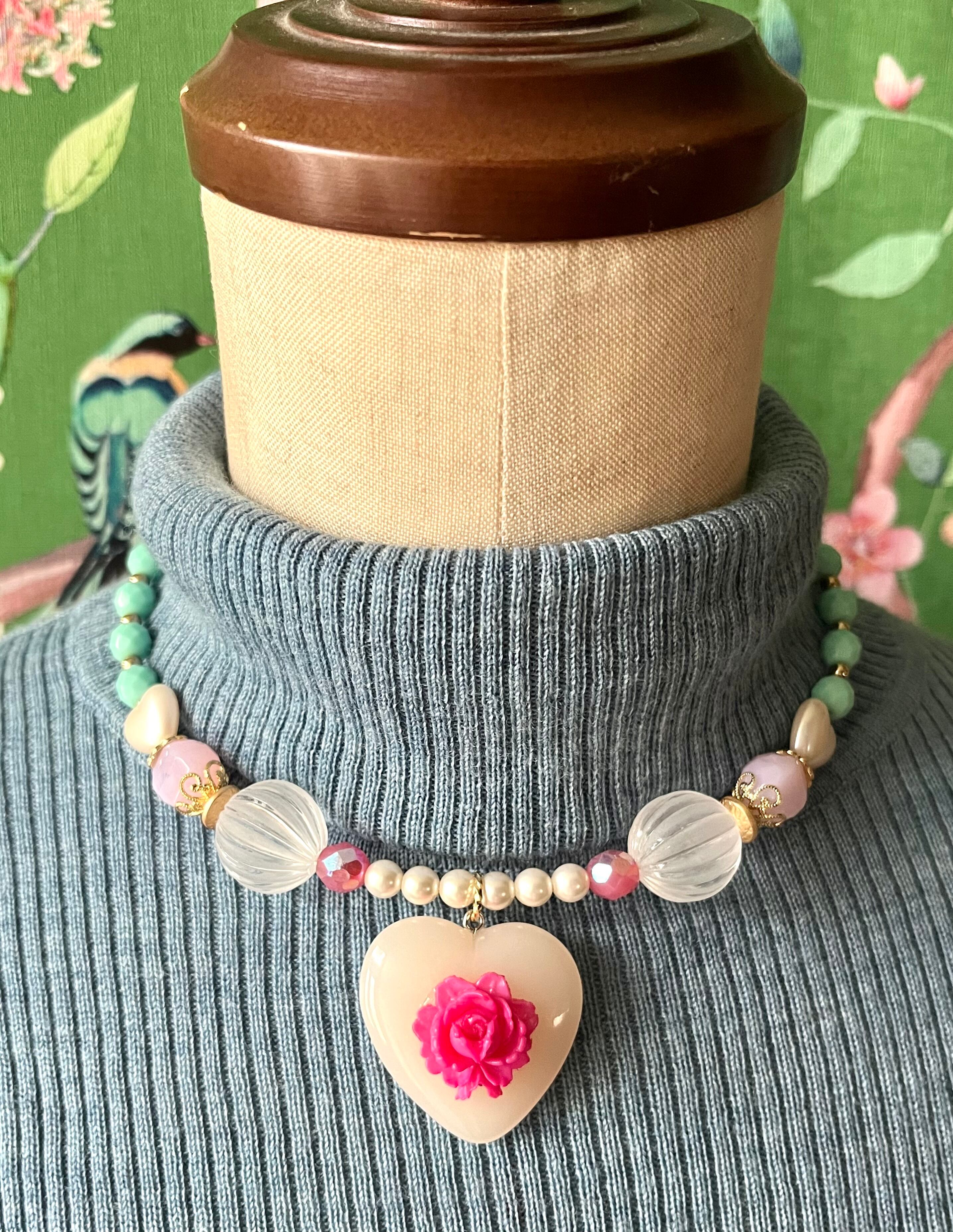 素材:チェコ硝子ビーズ、キャストパーツ、プラビーズ、ビンテージカボションなど