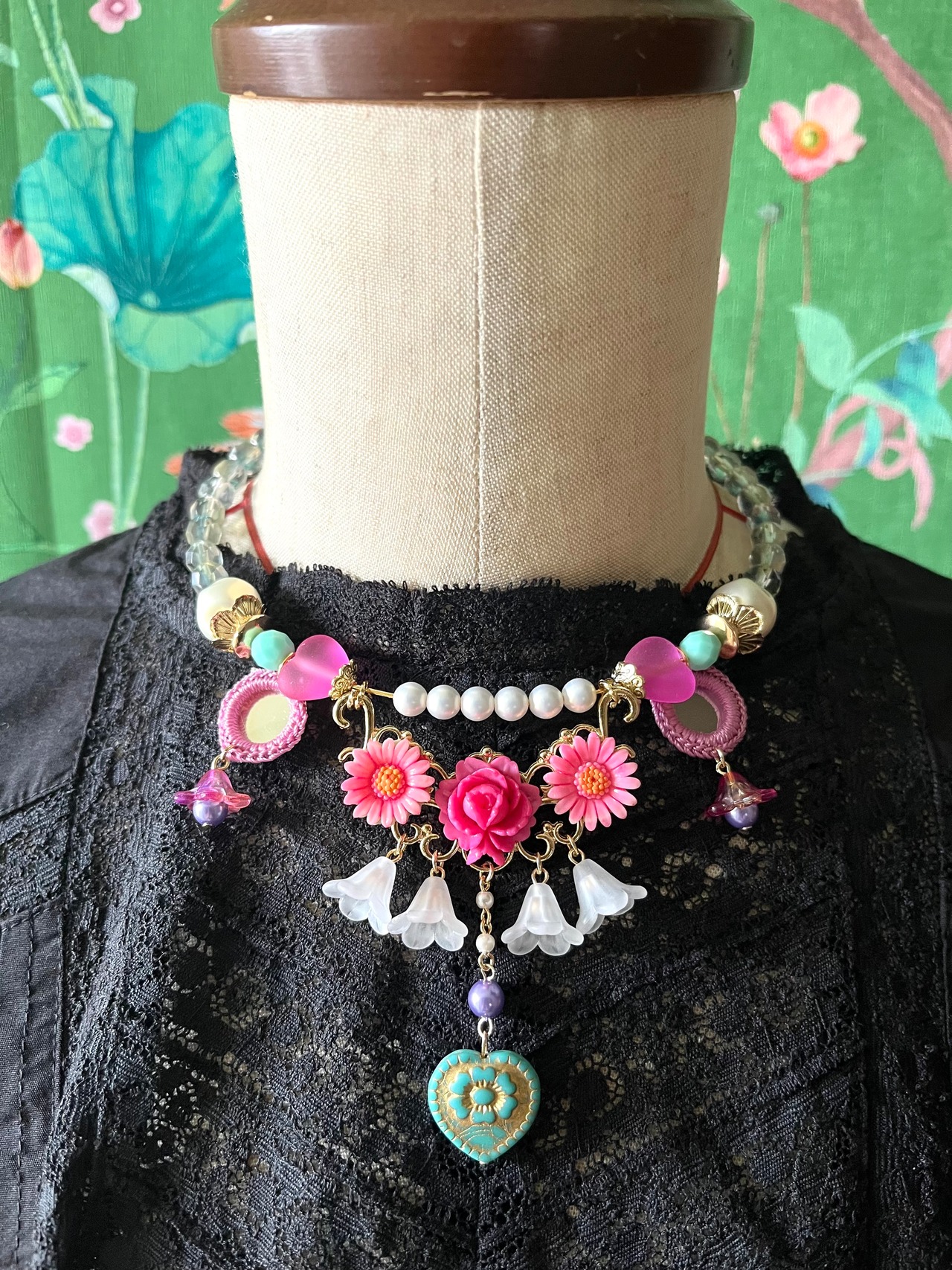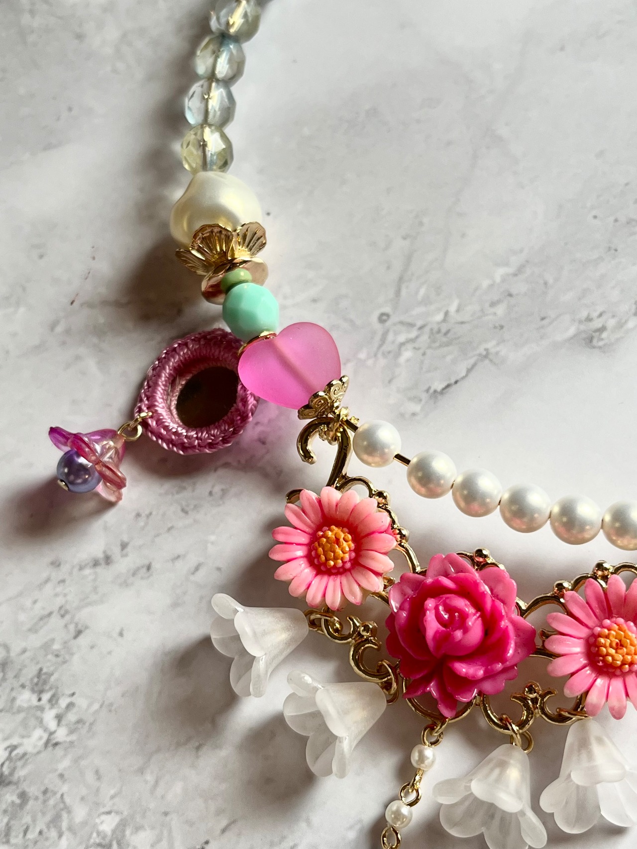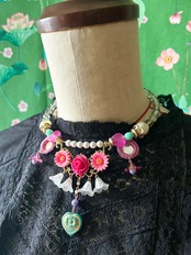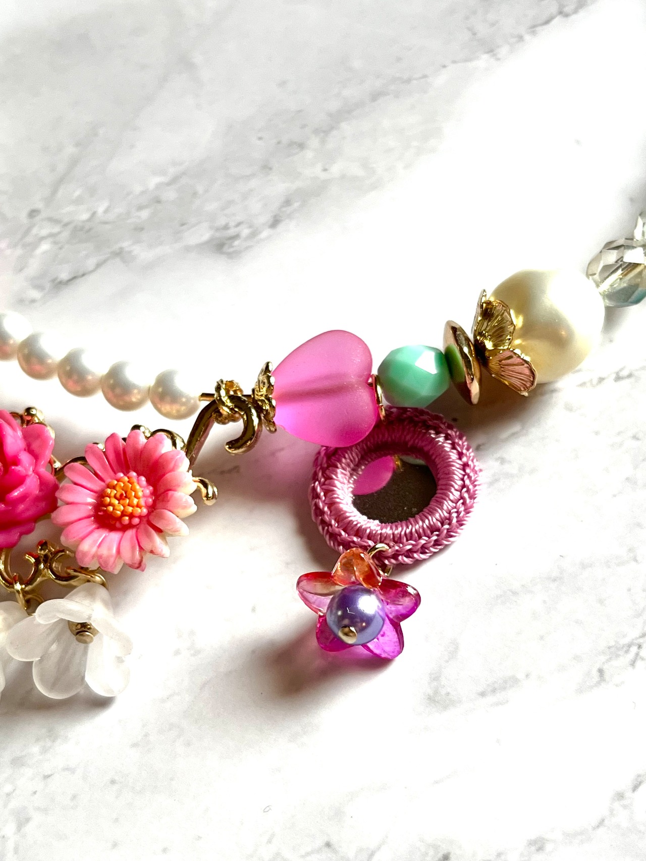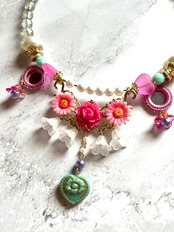 素材:ドイツアクリルビーズ、ビンテージカボション、チェコガラスビーズ、ミラーパーツ、キャストパーツ、プラスチックビーズ、アクリルビーズ、ガラスビーズなど