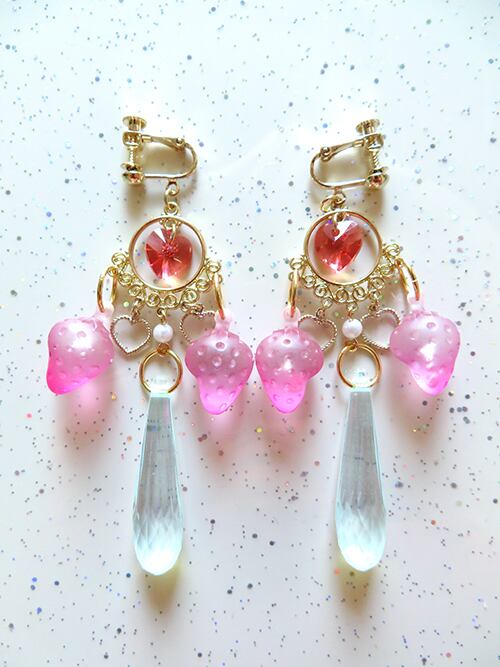 日本製のフロストのいちごチャームが可愛いイヤリング。