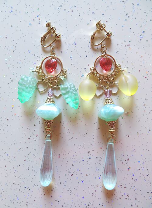 日本製のフロストの葡萄と桃チャームが可愛いイヤリング。