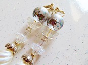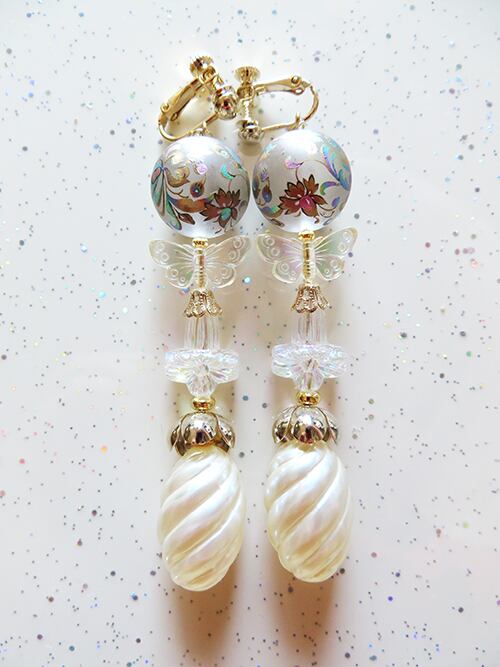 オーロラの蝶々と繭のようなツイストパールが美しいイヤリング。