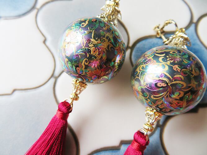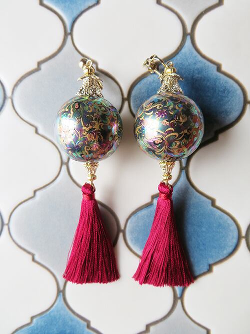 宵闇を集めた提燈をイメージした耳飾り。