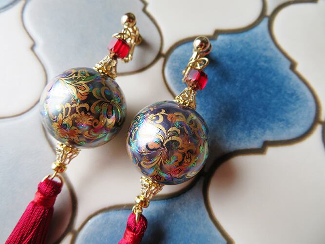 螺鈿細工の様に美しくいビーズはグレーカラー。