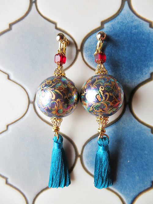 螺鈿細工の様に美しくいビーズはグレーカラー。