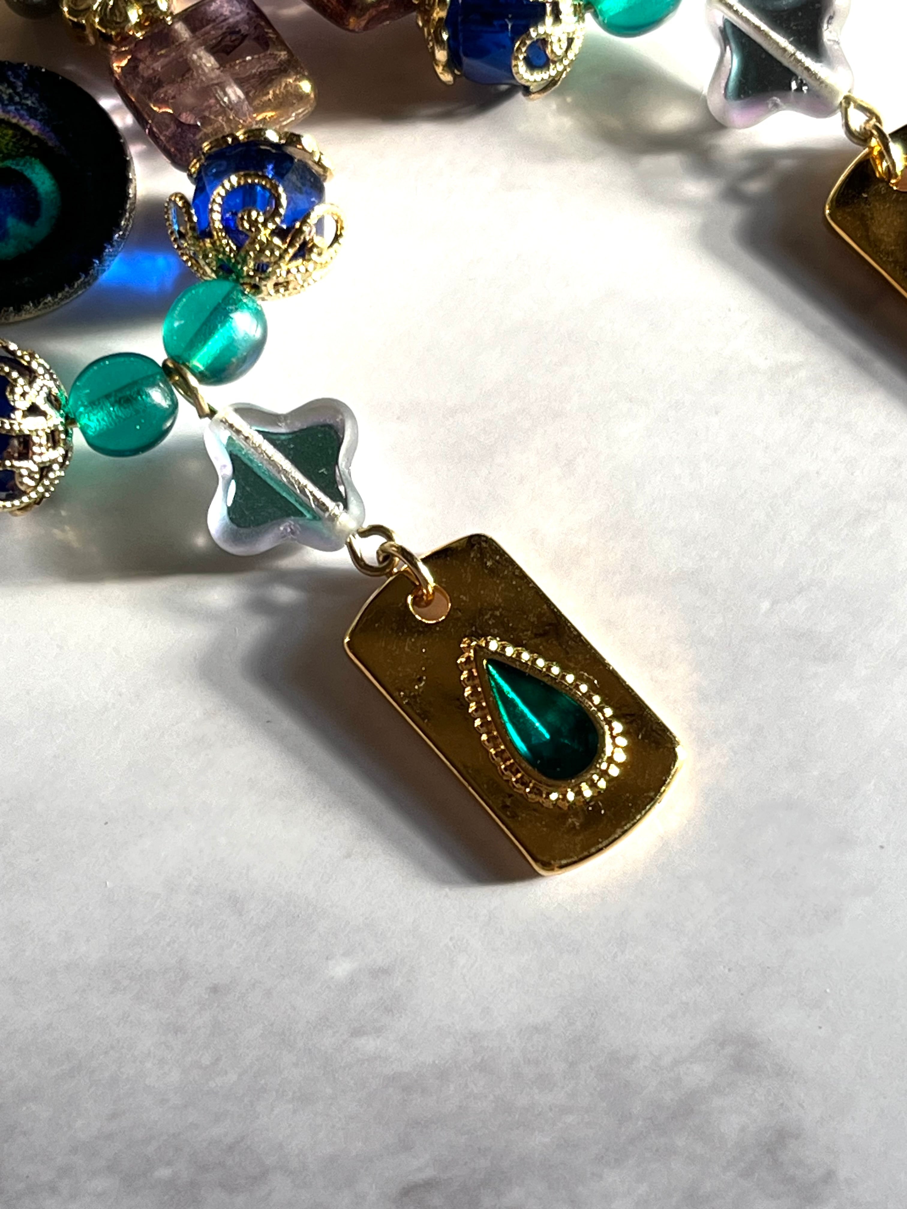 素材:チェコ硝子ビーズ、キャストパーツ、ギリシア製金属チャームなど