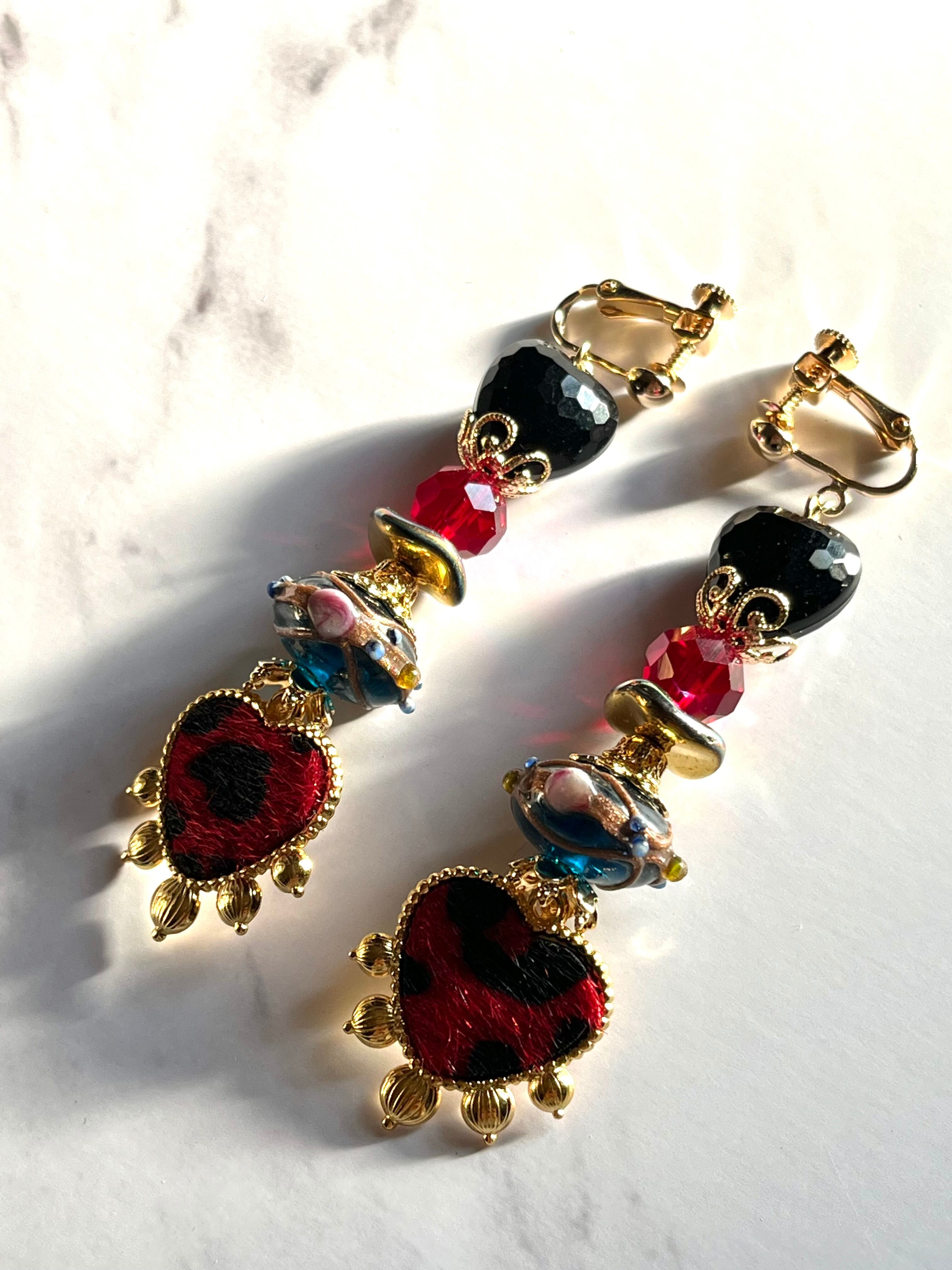 素材:チェコ硝子ビーズ、キャストパーツ、ビンテージ硝子ビーズ、台湾仕入れランプビーズなど