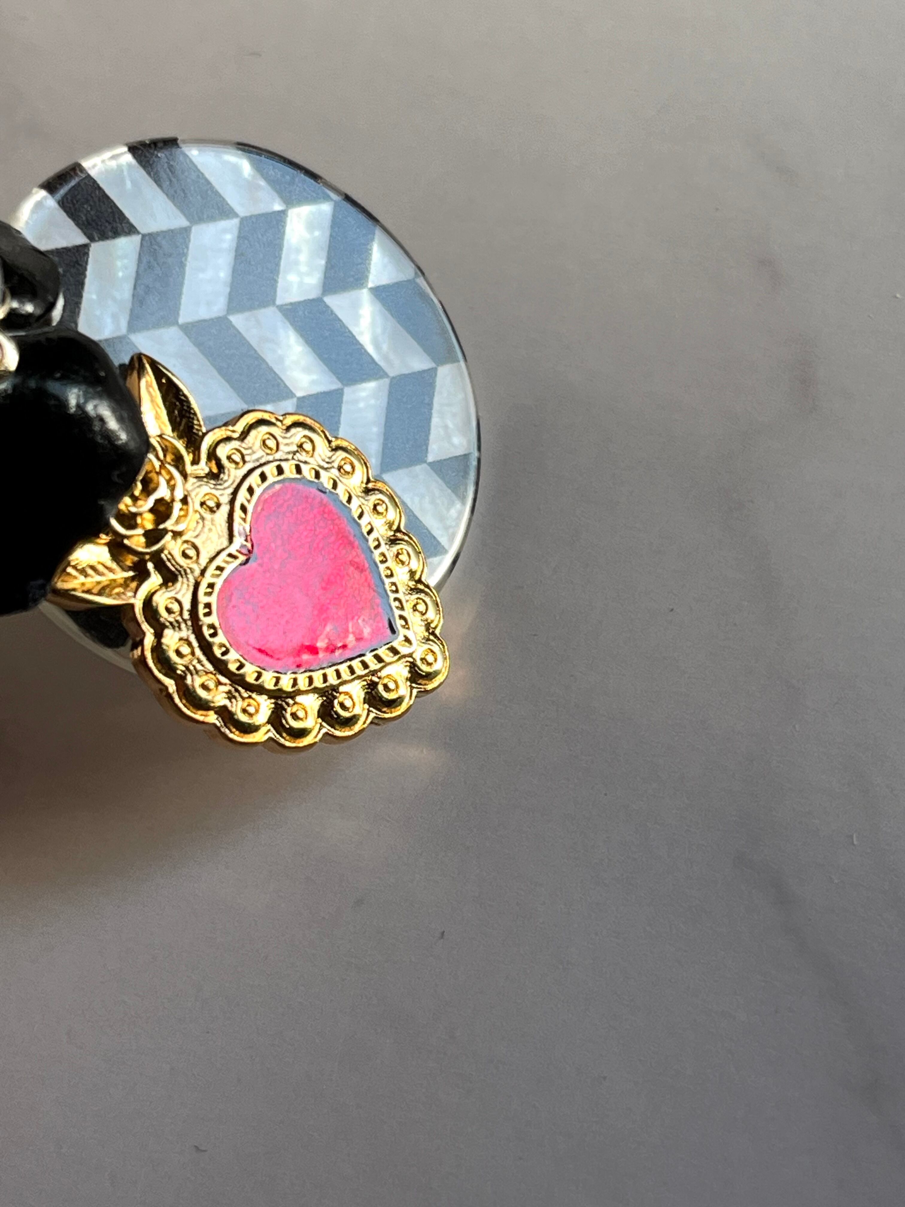ギリシア製の美しいコラソンチャームを使用した、お守りのようなデザインのアクセサリー。