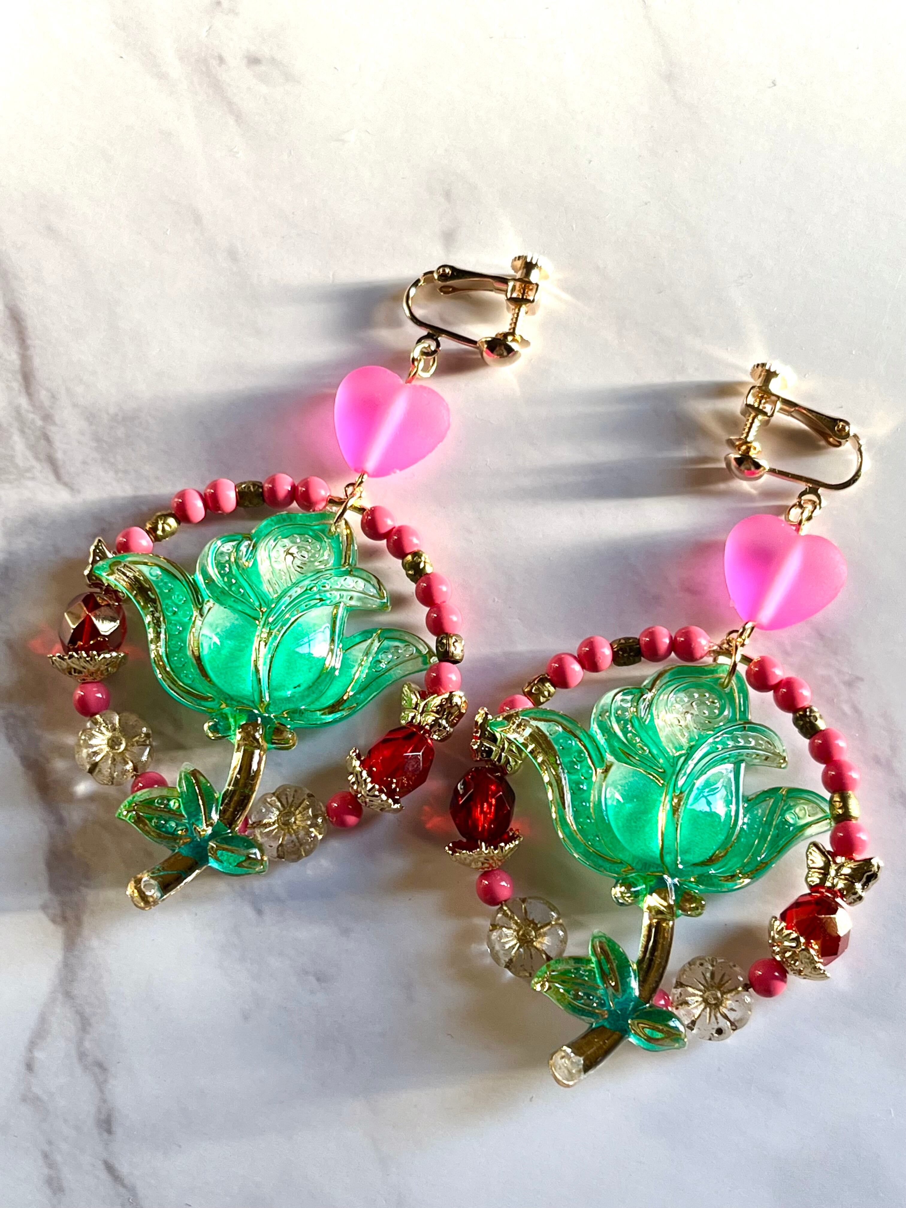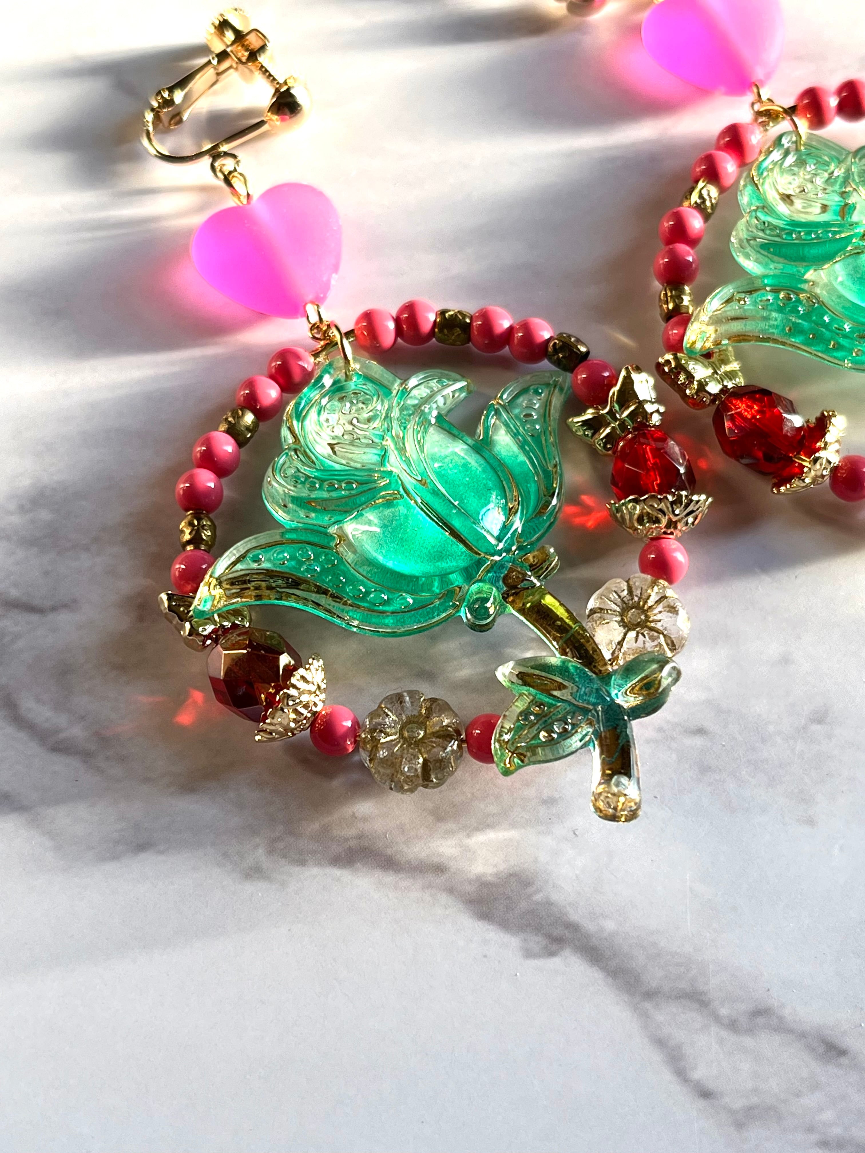薔薇チャームはplastic製のため、大ぶりですが見た目より軽いデザインになっています。