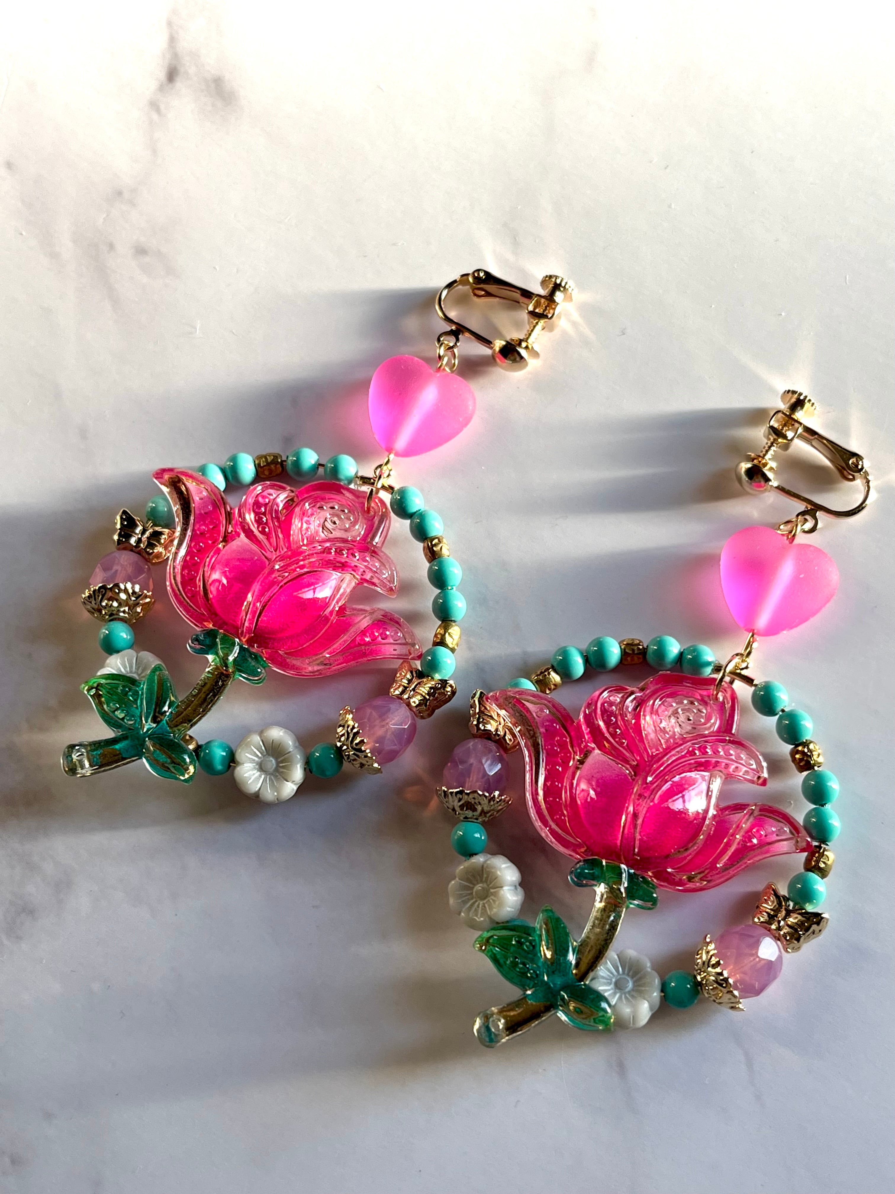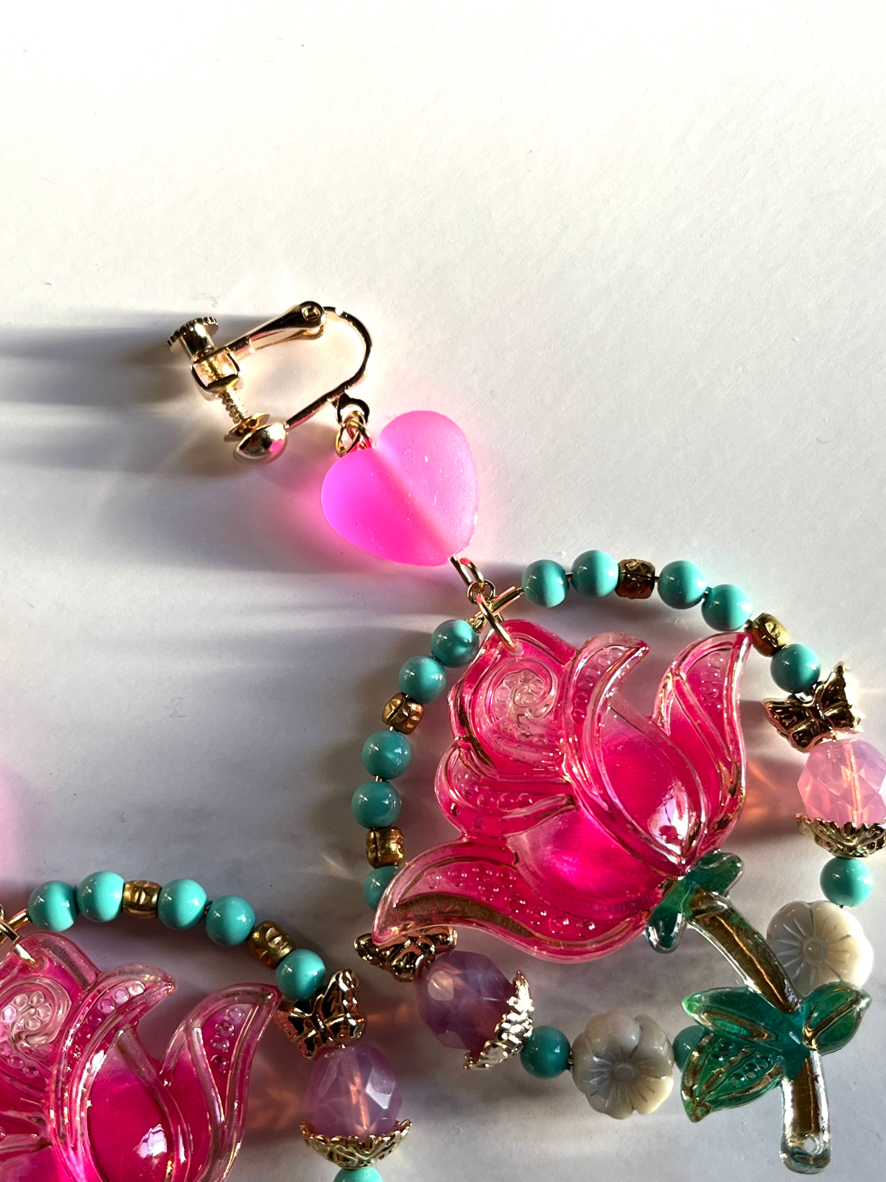 薔薇チャームはplastic製のため、大ぶりですが見た目より軽いデザインになっています。