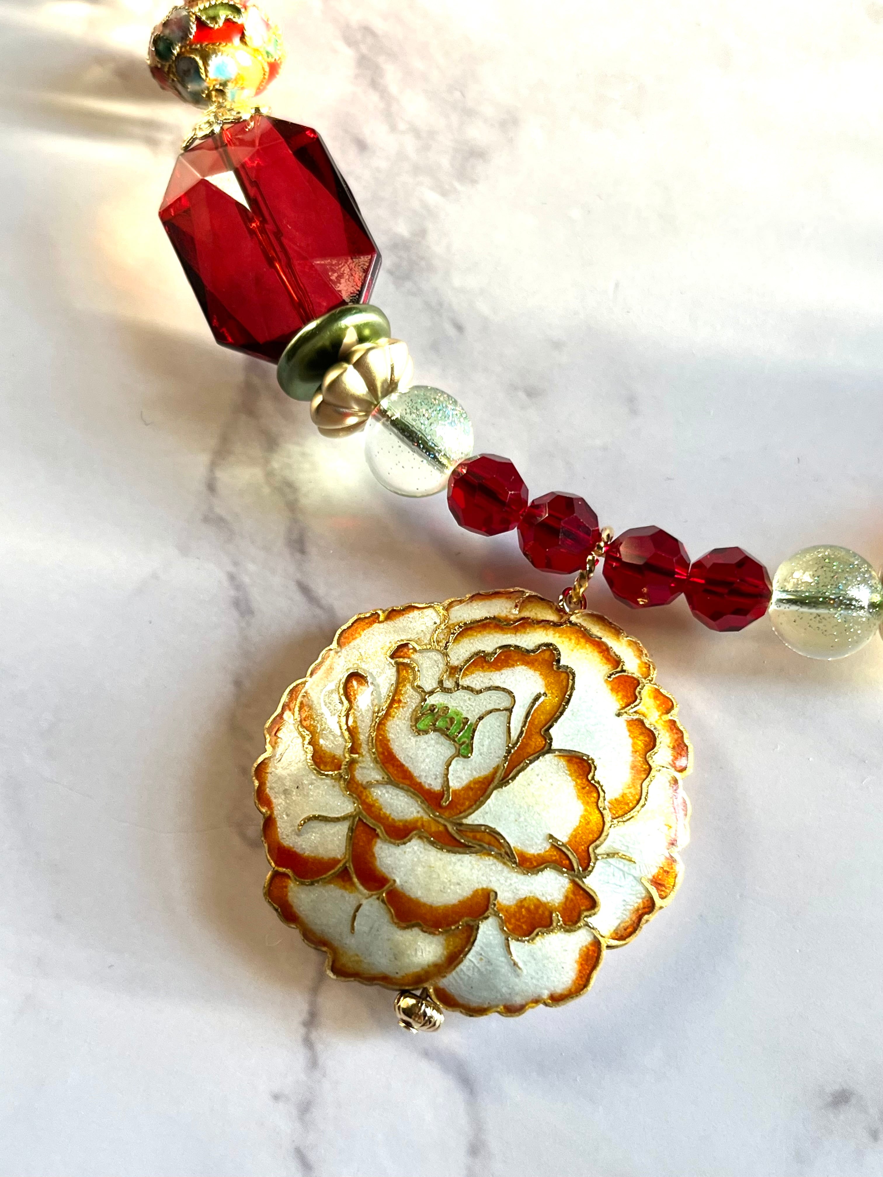 こちらは珍しいビッグサイズの牡丹硝子七宝ビーズを使用しています。