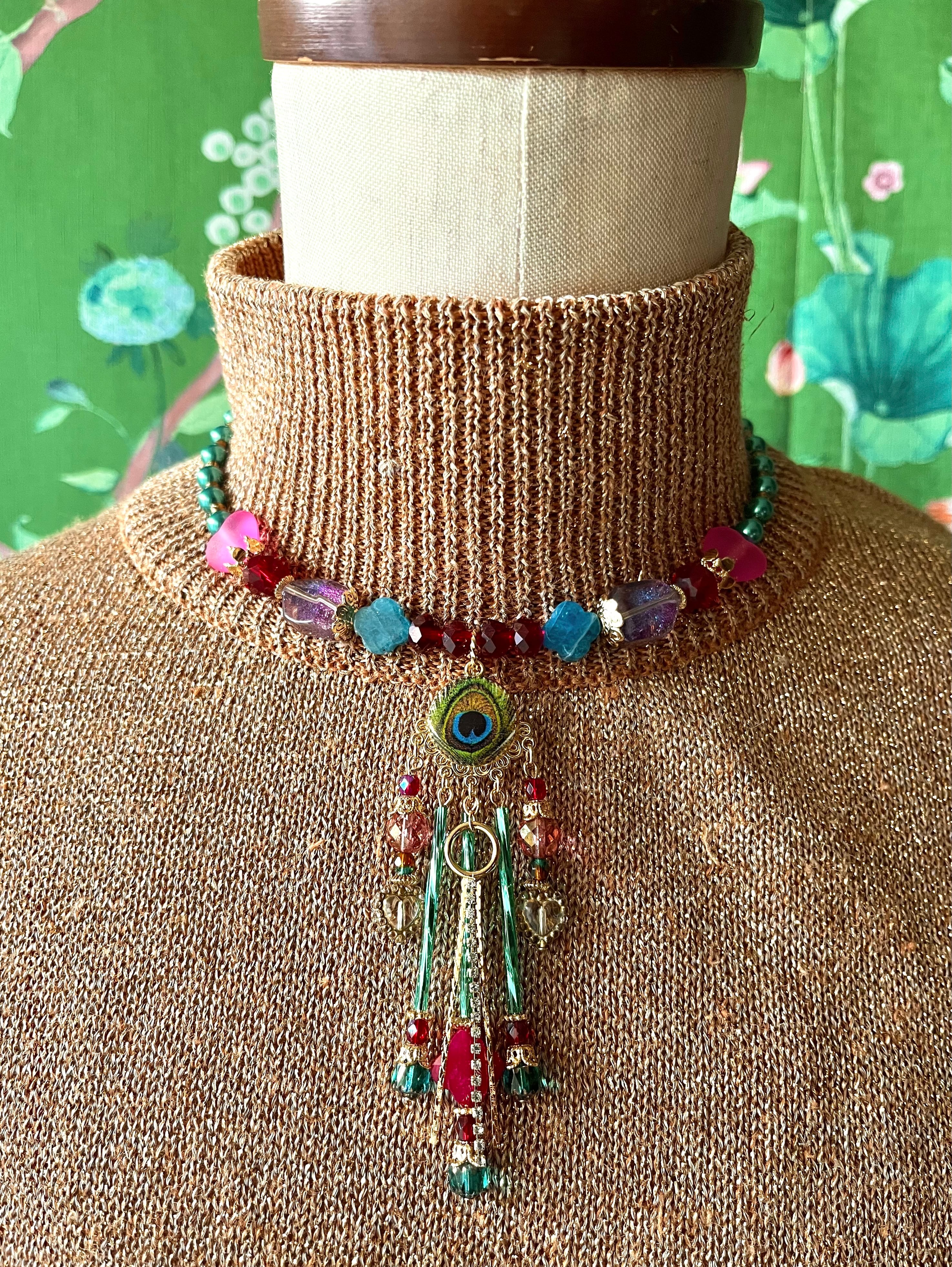 素材:チェコ硝子ビーズ、キャストパーツ、ビンテージ硝子ビーズ、天然石ビーズ、金属タッセルなど