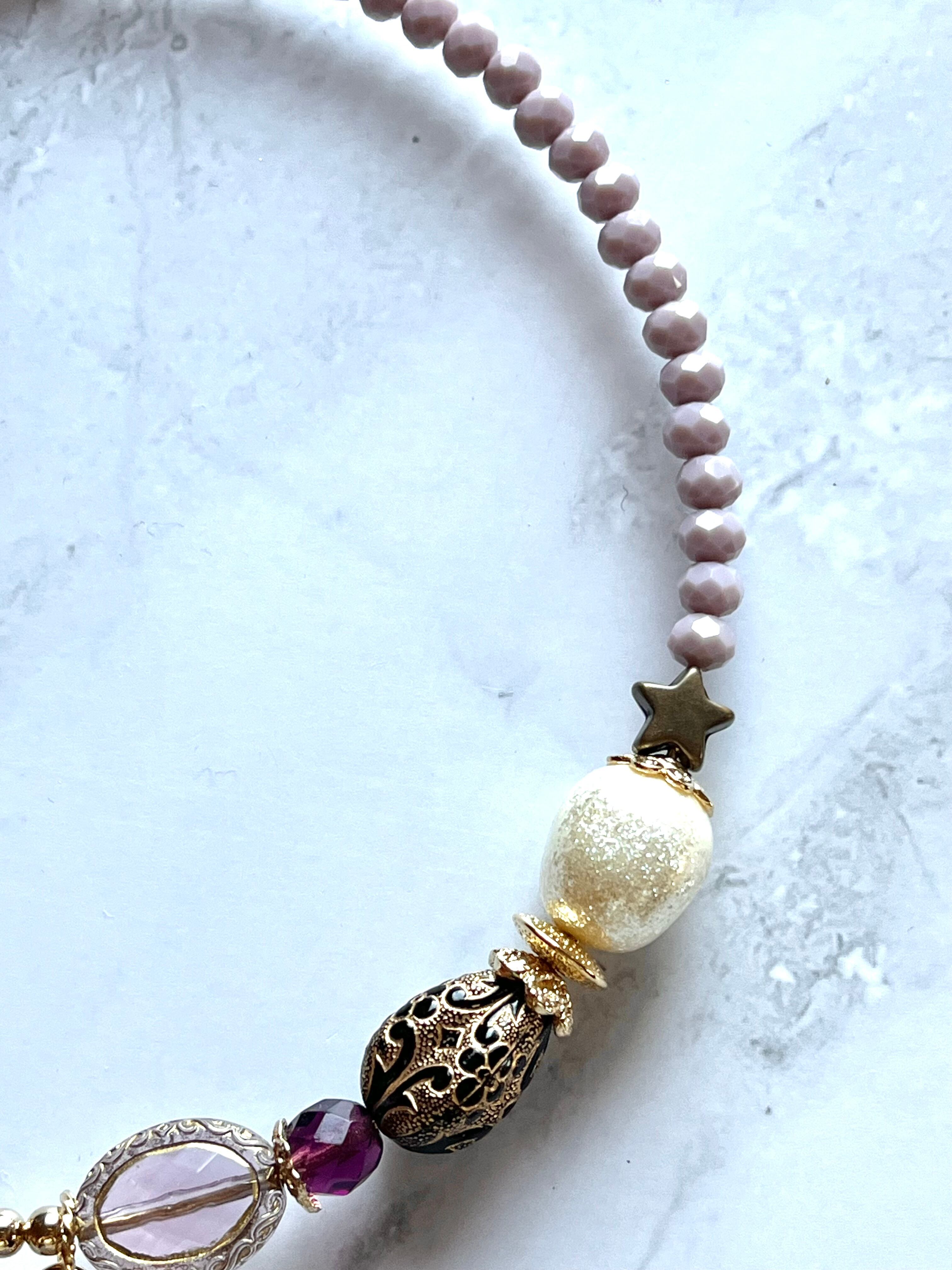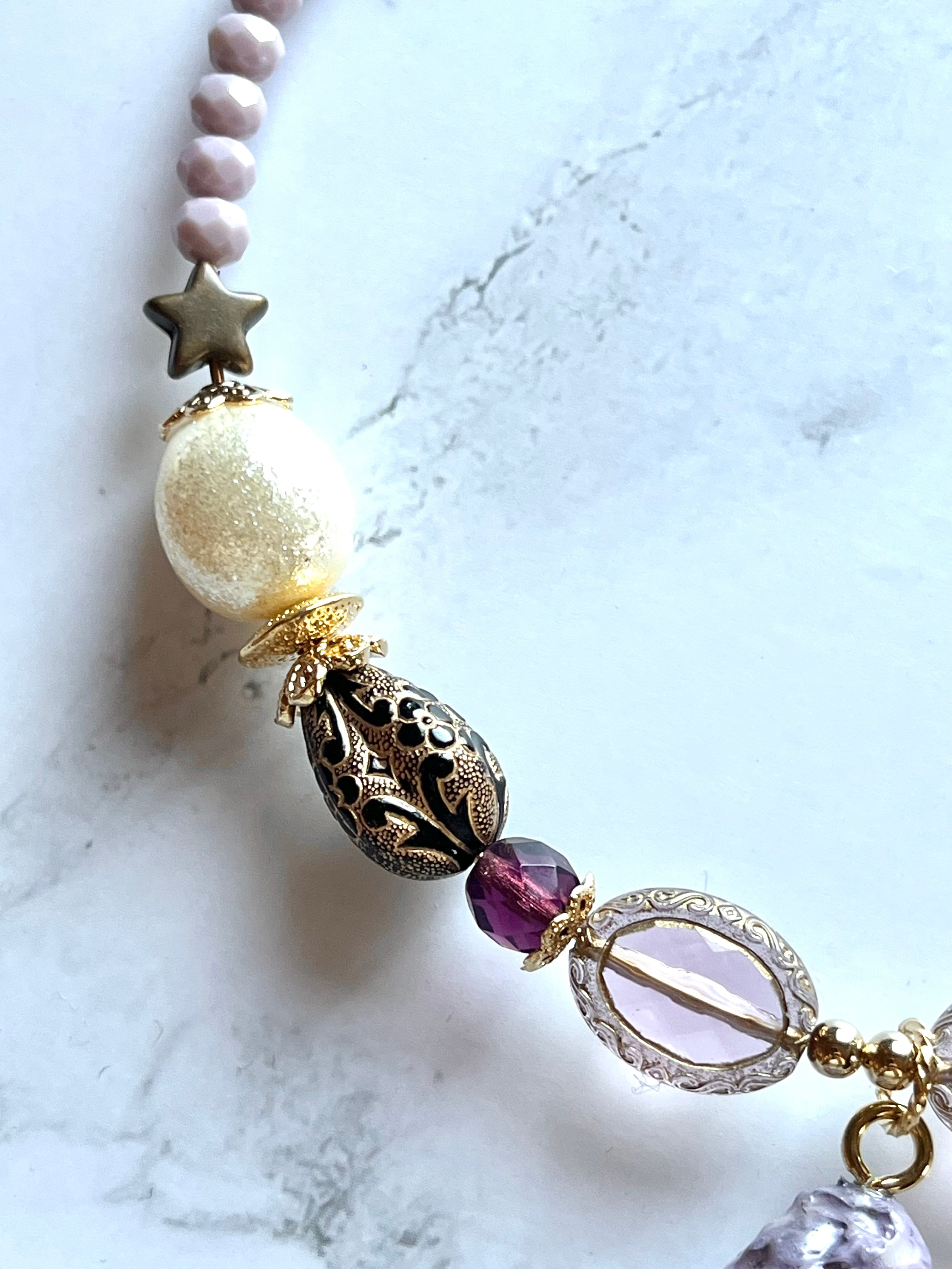 素材:ドイツ製アクリルビーズ、硝子ビーズ、プラスチックパール、キャストパーツなど