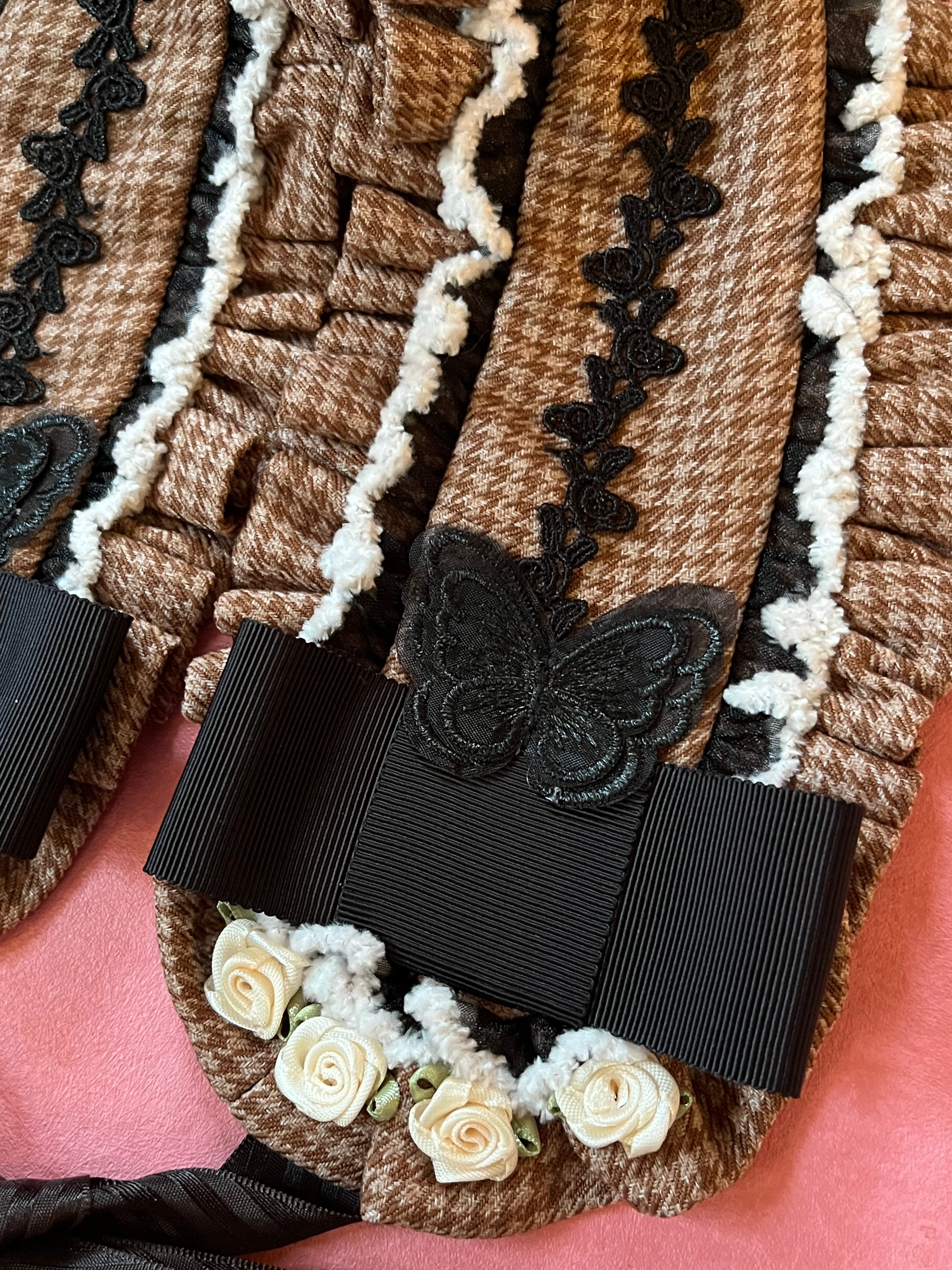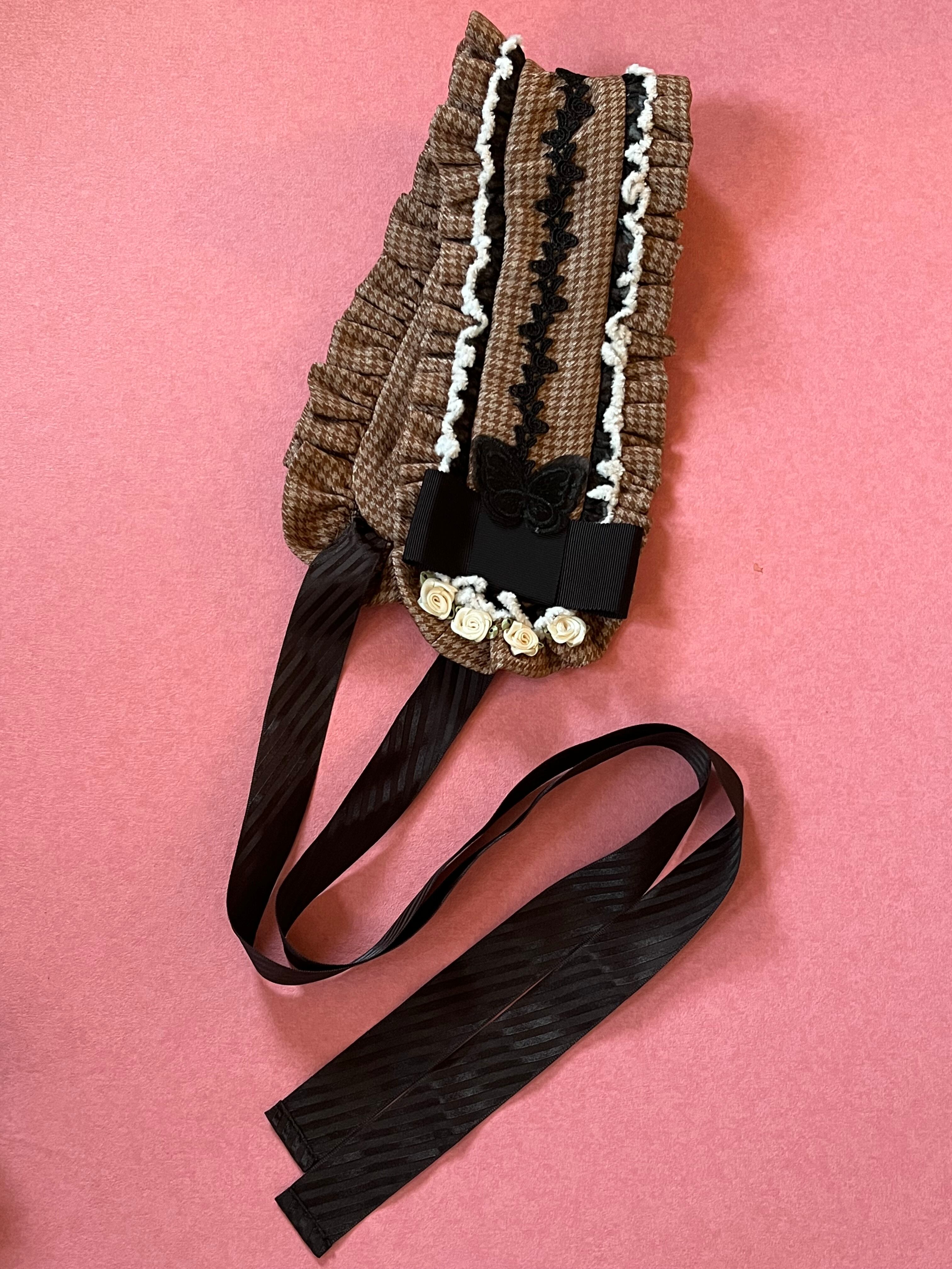 ブラウンカラーを基調としたフリルヘッドドレスは、古着や様々なお洋服に合わせてお楽しみ頂けます。