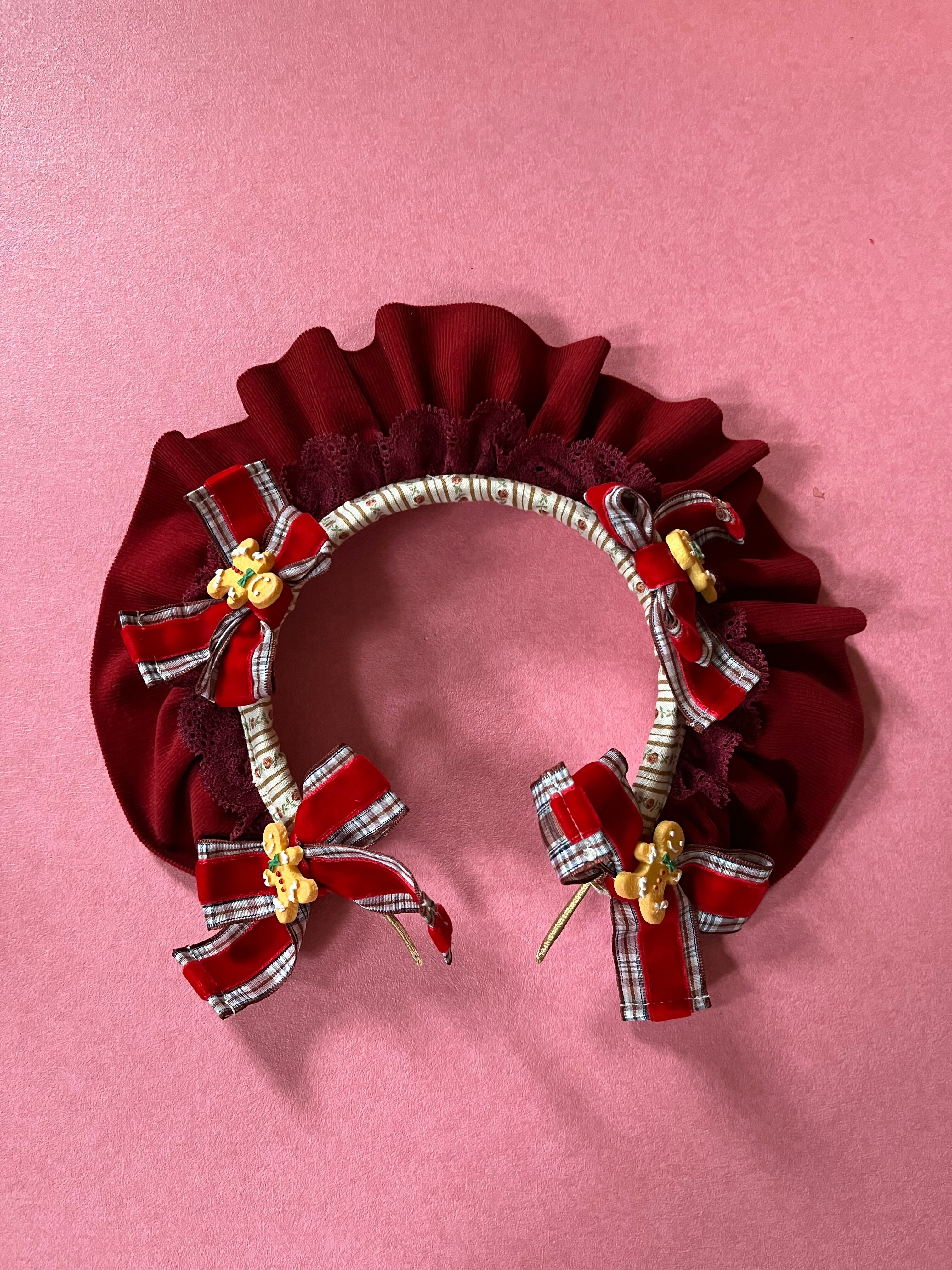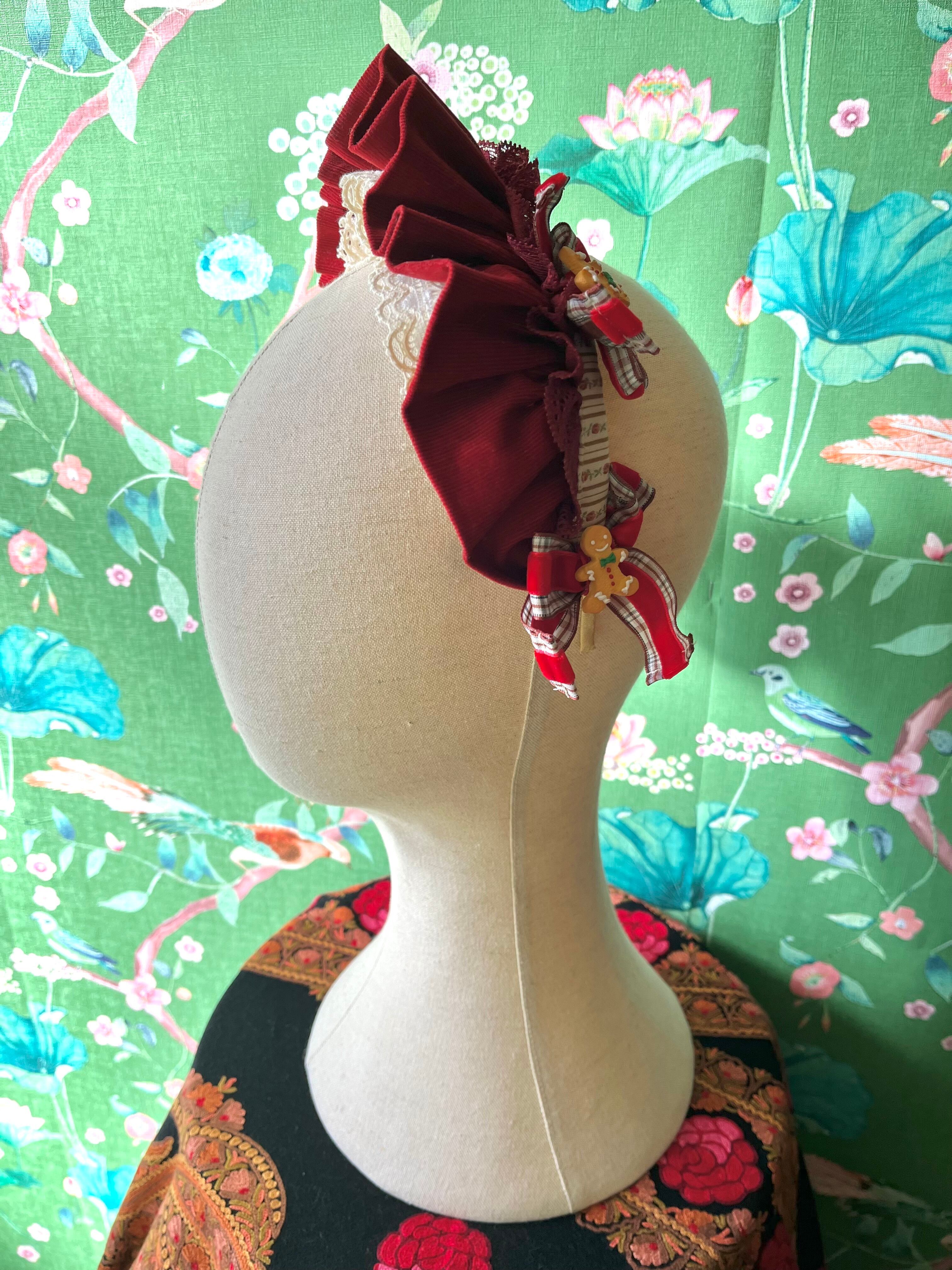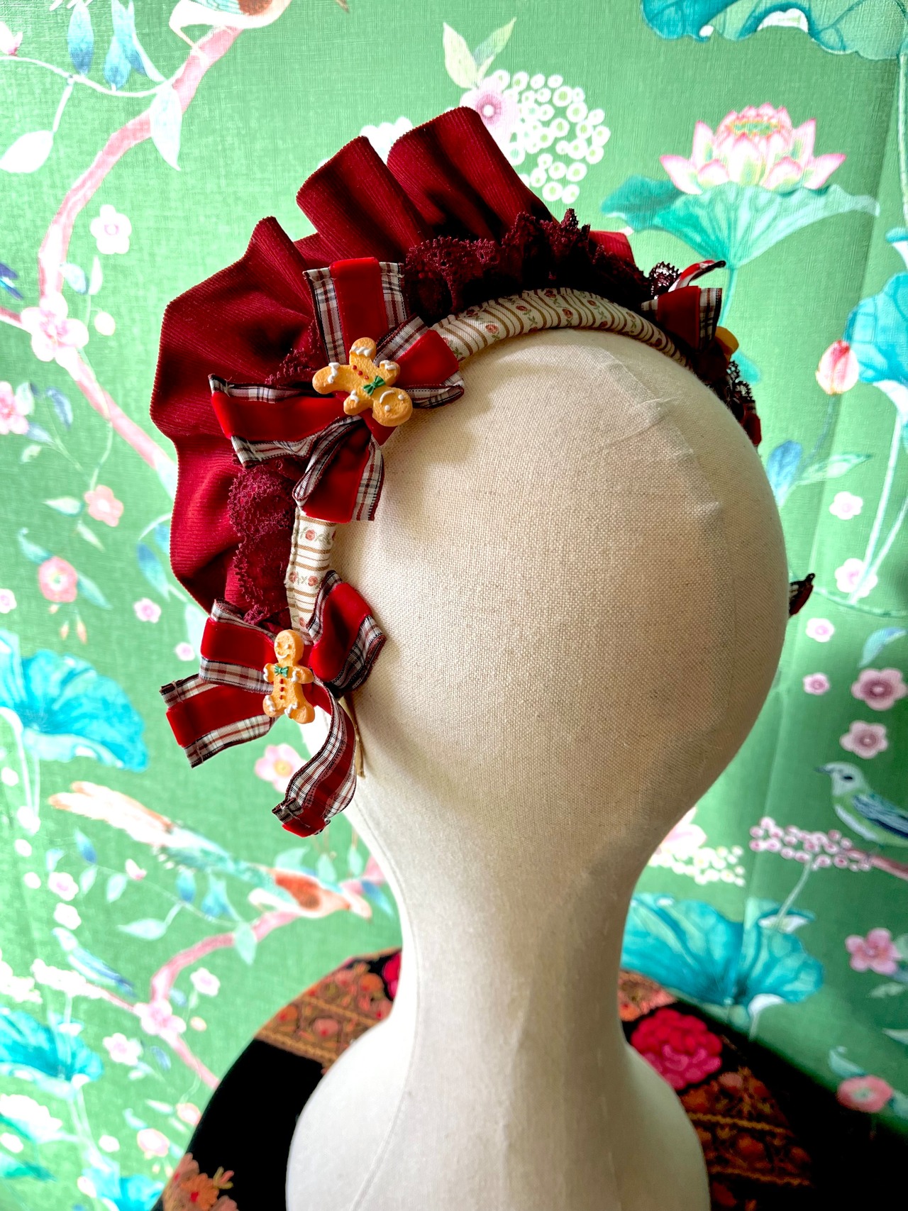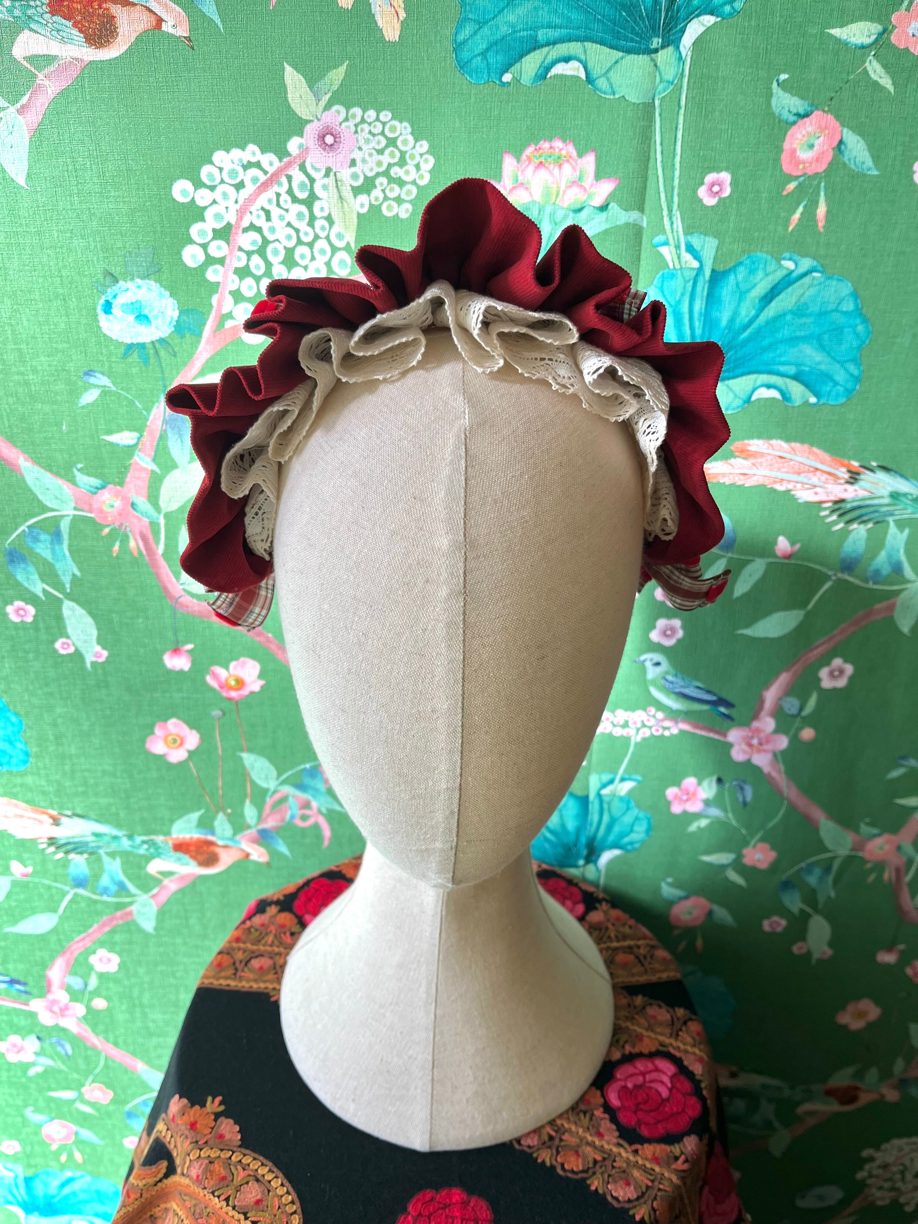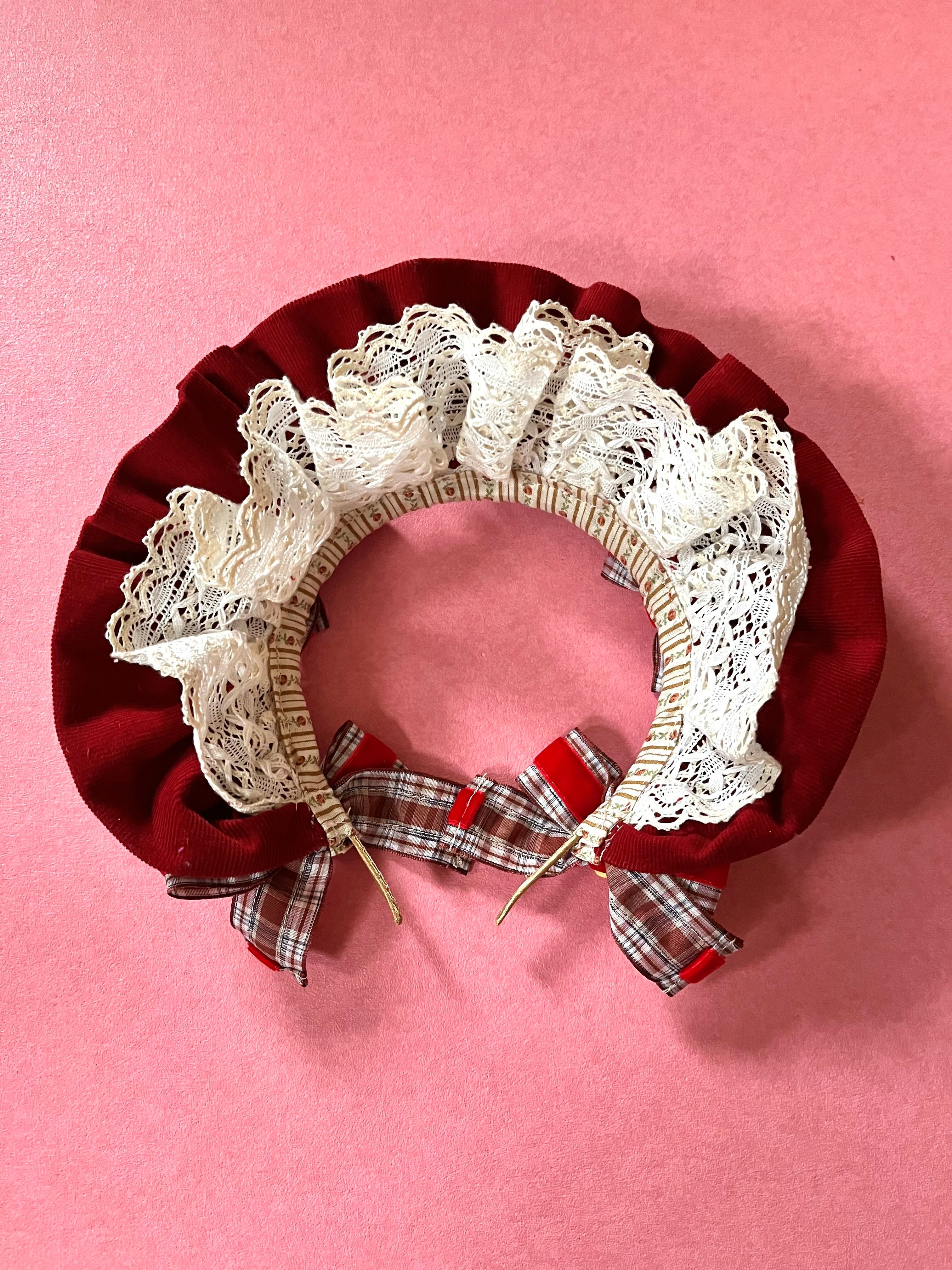 フリルを前に倒し、ハーフボンネシルエットで着用するフリルカチューシャです。