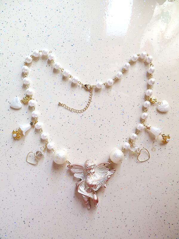おおぶりの天使パーツが可愛いチャームネックレス。