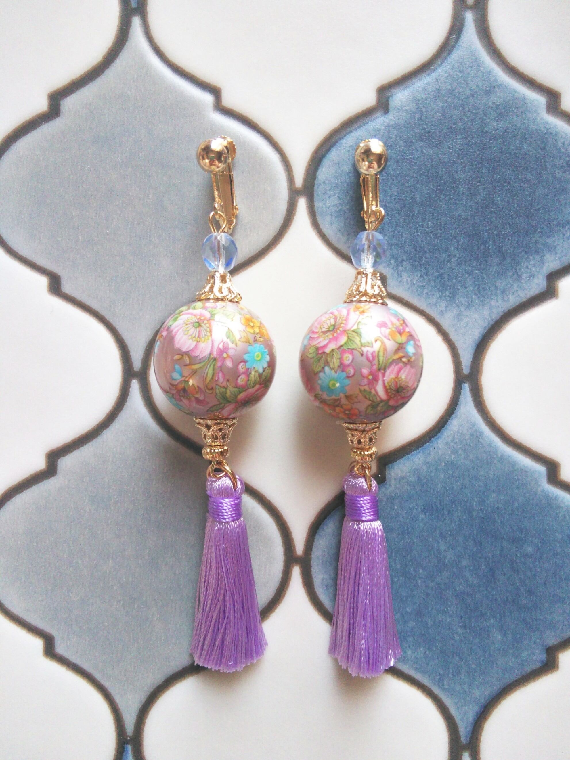 地色はパーライズの青みピンク、繊細な花柄が可愛い図案です。