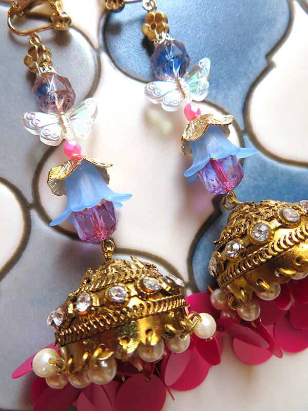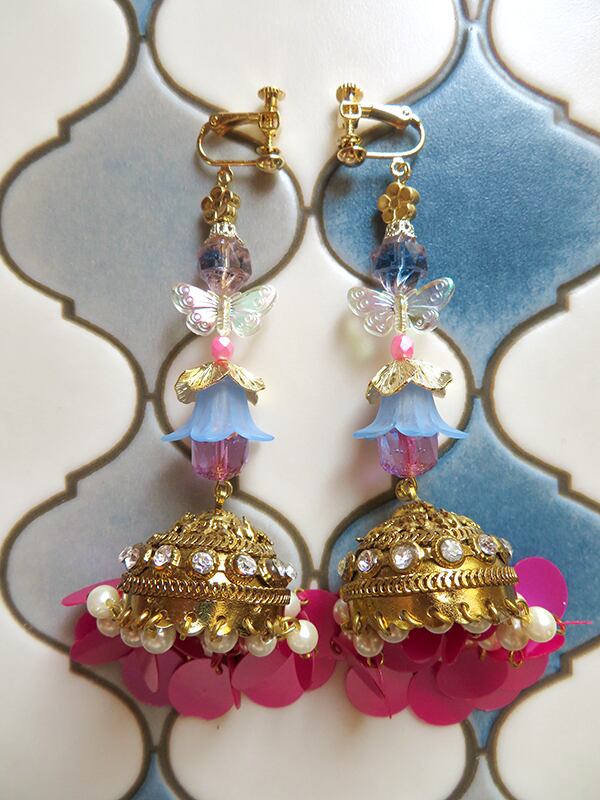 オリエンタルな庭をイメージした大ぶりな耳飾り。