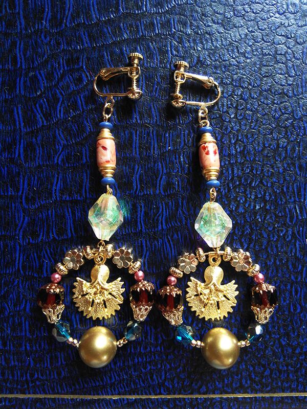 ゴージャスで、でも何処かキッチュな硝子玉の様な耳飾りです。