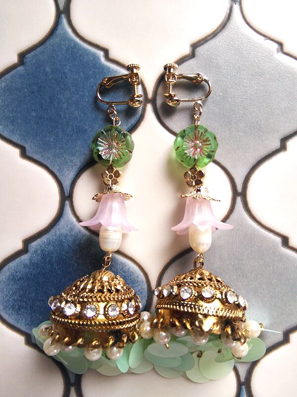 オリエンタルな庭をイメージした大ぶりな耳飾り。