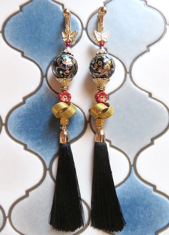 中国をイメージしたロングタッセルがエレガントな耳飾り。