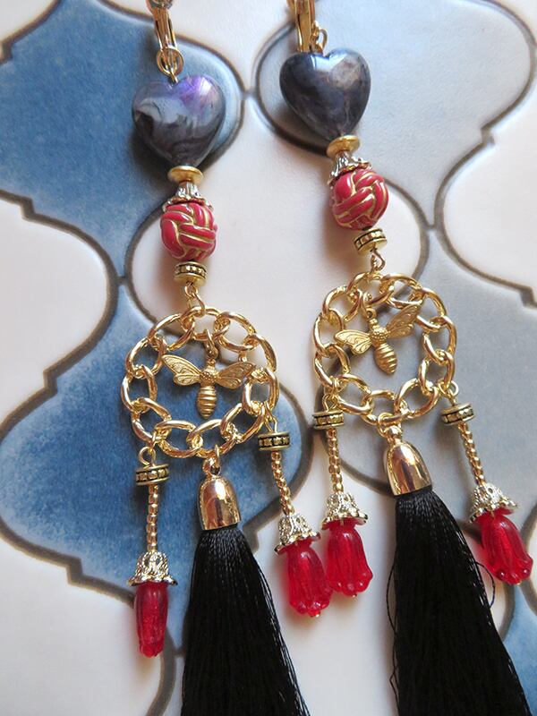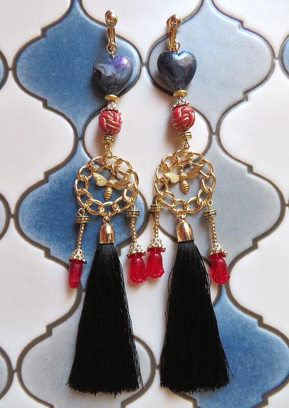 中国をイメージしたロングタッセルがエレガントな耳飾り。